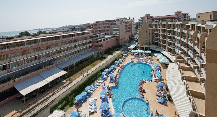 Хотелось побывать в Болгарии и выбрали недорогую четверку. Отель с очень маленькой территорией, на которой только бассейн, который не чистили ни разу и на дне был мусор... Территория бассейна окружена зданиями и это сильно спасало от холодного ветра. Довольно неплохой дизайн отеля, но заметно уже обтертый и изношенный. Туристы в основном пожилые люди и в нашем случае 90% из Польши )). Персонал относится довольно равнодушно, после Египтов и Турций это сильно бросается в глаза. Порадовало питание, много мясных блюд, все приготовлено качественно и вкусно. Пиво замечательное, вино не понравилось совсем, ни белое, ни красное. Может это частный случай но и в других местах был сомнительный вкус. Поскольку мы были в конце сентября, нам досталось холодное море и холодный бассейн, но теплое солнце все же подогревало немного бассейн и в нем можно было чуть-чуть поплавать. На улицах довольно много мусора, почему то подметать улицы там не модно... Отель находится с краю Солнечного берега, поэтому довольно тихо и спокойно там, в отличии от центра, где жизнь кипит. Подойдет для любителей спокойного отдыха.