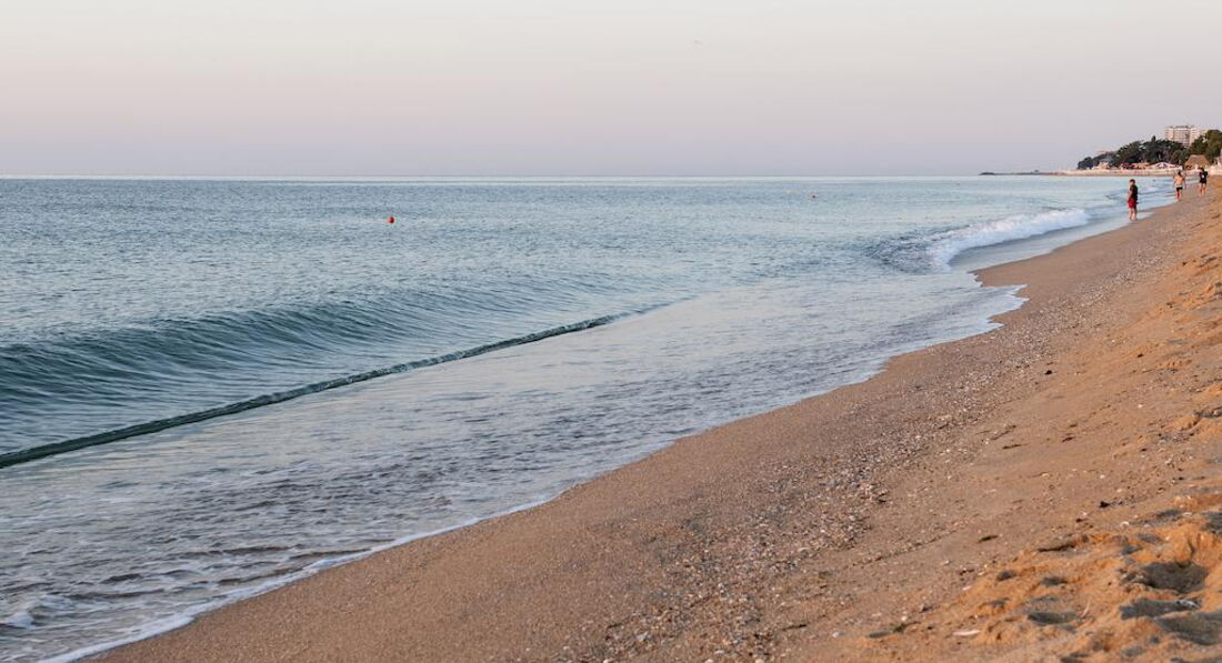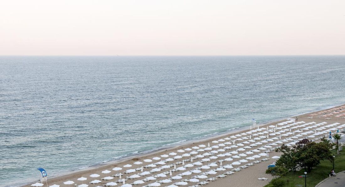 Лежаки с матрасами, пляжные полотенца, зонты - бесплатно. Пляж в двух шагах. Самый немноголюдный на всех Золотых песках, как нам показалось. Вода в конце августа для меня уже немного прохладная, но, тем не менее, купались каждый день. Иногда после обеда поднимались приличные волны, вывешивали красный флаг. Дождь был один раз за время нашего пребывания, ближе к вечеру и довольно кратковременный. Море чистое, медуз не видели. Вход пологий, что удобно для семей с детьми.