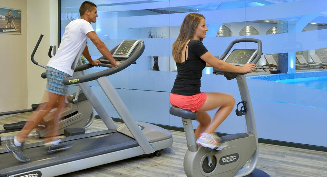 В отеле имеется спортзал. Не слишком большой, однако, есть два лежака, штанги, гантели, один силовой тренажер, один вело и один эллипсоид. Я ходил в зал перед обедом, практически всегда занимался в одиночку, ключи брал на ресепшине.