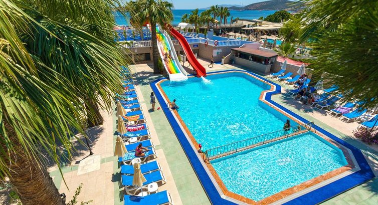 Готель розташований в Гюмбеті, за 32 км від аеропорту, на першій береговій лінії. Складається із п'яти 2-х поверхових корпусів. КОНЦЕПЦІЯ "ЛІТО 2019". Дата побудови 1974 р. Остання реновація 2018р. Загальна площа 5000 кв.м.
