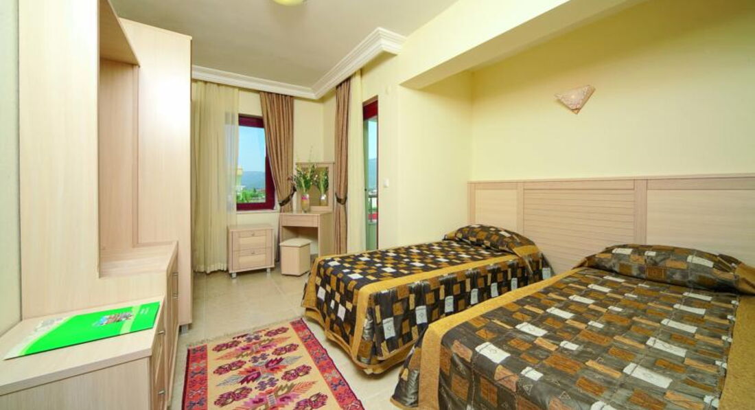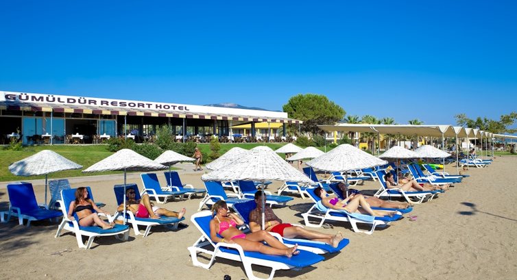 Мы отдыхали в Гюмюльдюре в июле 2013 года. В отель прибыли рано, в 8.30 по местному времени, номер получили только в 12.00.