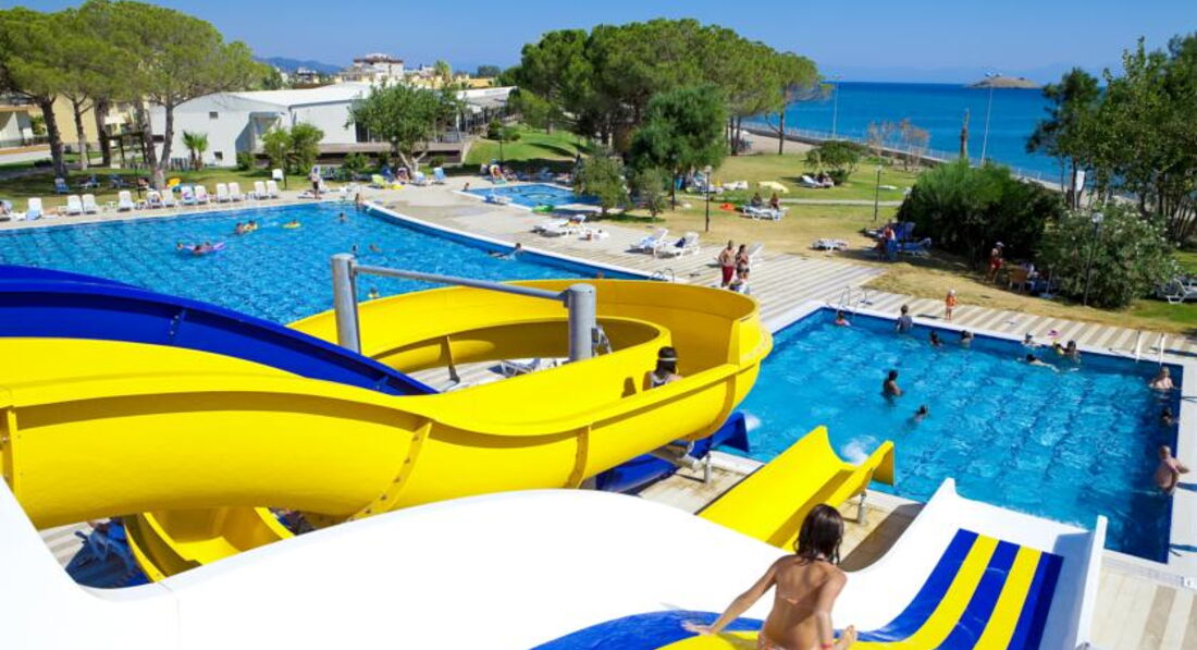 Когда собирались ехать отзывов нашли мало ,но плохих как бы не было,я знала куда еду,жалко что про него нигде ничего не было найти ,но за пару дней до вылета случайно нашли свежие фото и увидели что горки есть,а везде еще старые фото на сайтах,ну короче нам все понравилось ,доколебаться было не до чего ,ну только что море очень холодное ( мы были с 17 августа по 29 августа ) нам сказали что это самое холодное море в Турции Эгейское,так что мы зашли в него только пару раз,а так только в басейнах.