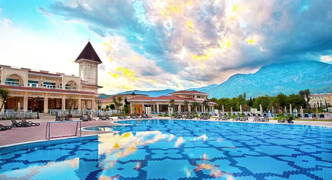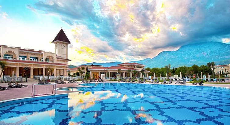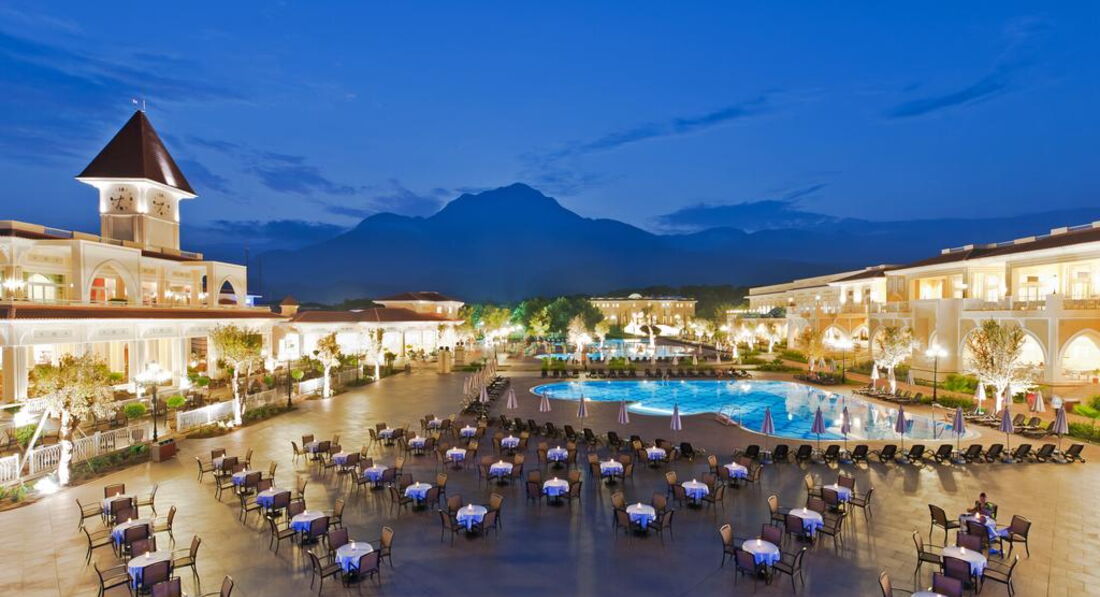 Отдыхали в сентябре 2016. Очень понравилось, море было превосходное, погода тоже, хотя были и дожди) Отель сам себе компактный. Мы жили в домиках двухэтажных, 21 номер дома. В этом плане отлично заселили, спускаясь со 2 этажа, попадаешь прям к "персональному" бассейну, где в принципе не редко и отдыхали. Очень удобное расположение: за ним был аквапарк, до моря и до ресторана идти минуты 3. По вечерам интересные программы, очень понравилось лазерное шоу с неожиданным салютом, просто потрясающее зрелище, которое порой и в Москве-то не встретишь) Пляж - галька, есть маленький пирс, но все же лучше покупать тапочки, ибо заходить, а тем более выходить ужасно больно. На территории отеля есть бары - круглосуточные, большой выбор напитков, но, к сожалению уже здесь идут минусы. Часто приносят не то, или сначала наливают настоящий Хэнеси, а потом уже несут муть , которая даже по цвету сильно отличается. Порой официанты забывают про заказы. . Ресторан тоже ничем не отличился( Если обычно в отелях каждый день - новые кухни, то здесь же все ничего не менялось: завтрак, обед, ужин - ежедневно одинаковые, блюда не подогреваются и зачастую, приходя к столу, они были уже холодные( А так, в общем, отель по рейтингам (которые озвучивали гиды) занимает 2 место, после "Макс Рояля", очень хороший, интересный и красивый на фоне шикарных гор!