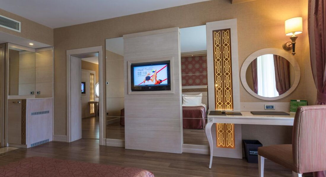 Не понравился персонал отеля. Очень надменный, с наигранными улыбками и гонором. В их глазах можно было прочитать только одну фразу: «За ваши деньги мы готовы на все». Невоспитанные девушки с Украины на ресепшене. Когда я спросила, где можно позавтракать (у нас был ночной рейс), то мне был дан ответ: «Вы не видите, я работаю с другими гостями. Там….(взмах рукой в неизвестном направлении)». И это отель премиум класса? Потом она дала нам номер, в котором уже живут люди. Мы открыли своей картой номер, а там двое мужчин. Было неприятно. Мы извинились и потащили чемоданы обратно на ресепшен, нам даже никто не помог. После того, как я очень громко все высказала об их ресепшене, пришел какой-то турок, извинился перед нами и дал другой номер в самой дальней вилле, как мы и просили. Хотя со слов гида, отель был заполнен только на 50%. Свободных номеров было много.