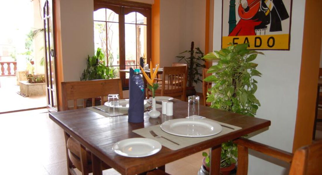 У нас был полупансион, на ужин мы заказывали все по меню (кстати, в ресторане русское меню есть). Здесь нареканий нет. Все делали неплохо, но очень медленно. Блюда, даже не индийские, с индийским оттенком.В отеле ужинают очень мало людей, в основном все ходят в кафешки в поселке. Но, поверьте, брать полупансион в этом отеле гораздо выгоднее, чем ходить в кафе в поселке.