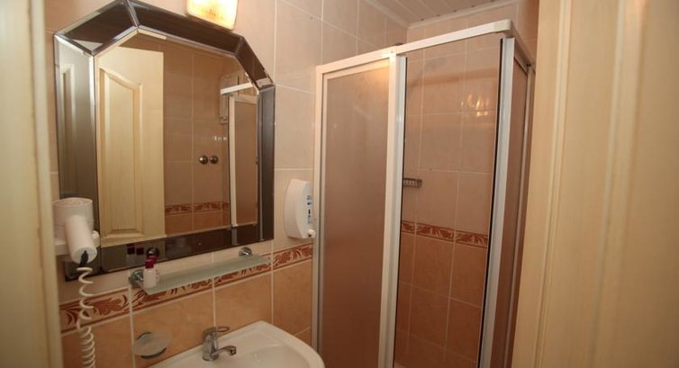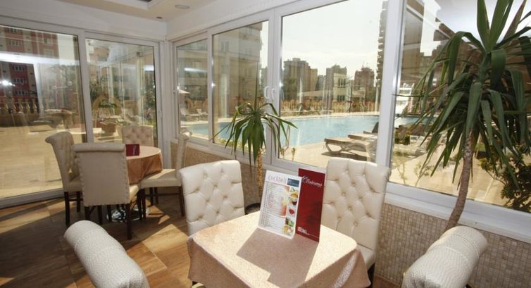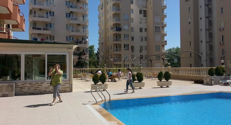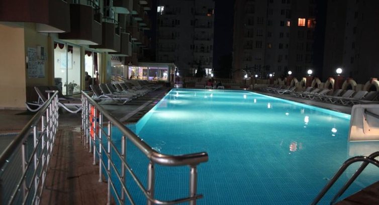 а так отель сам не себе не плохой, чисто, номера вполне приличные, все работало. Но вот расположение отеля - не очень, в жилом районе, до пляжа нужно идти через все улицу минут так 10-13, это вполне выносимо, но далековато. На пляже зонтики есть и шезлонги тоже, а вот полотенца брать нужно под роспись на ресепшене, и то когда мы хотели идти на пляж сразу после завтрака часов в 8, их там не было и нас просили подождать до 9. Естественно, мы не ждали и брали полотенца с номера. Пляж песчаный, и песок не очень хороший. Поначалу, вечером мы просто были в шоке, не отель а пансион для пенсионеров какой-то. Тишина гробовая. Мы были в шоке. Ни музыки, ни людей. Потом стало что-то налаживаться, появились люди (в основном - это экипажи самолетов, у них там перевалочная база, иранцы, турки и русские), из украинцев мы там были одни (2 девушки). Потом поставили столики на улицу, включили музыку - ураааа жизнь налаживается. Что касается еды - выбор не большой, хотя все было вкусно, но завтраки были одинаковые всегда - вареное яйцо, салаты, хлопья, сыр, оливки, овощи, хлеб. Булочек вкусных не было никогда, только хлеб. Сладостями и фруктами тоже не баловали. В принципе мы не голодали, просто если сравнивать с другими 4-мя звездами, так здесь выбор еды явно был меньше. У нас было все включено, но - воды в номере не было никогда, когда мы спросили - нам сказали что это за отдельную плату. Из напитков, был только один черный чай (выбора не было никакого), и юпи, и вода (нееее вкусная). Так что покупали мы бутылированую воду в магазине, стоит 1 л около 1 Лиры.