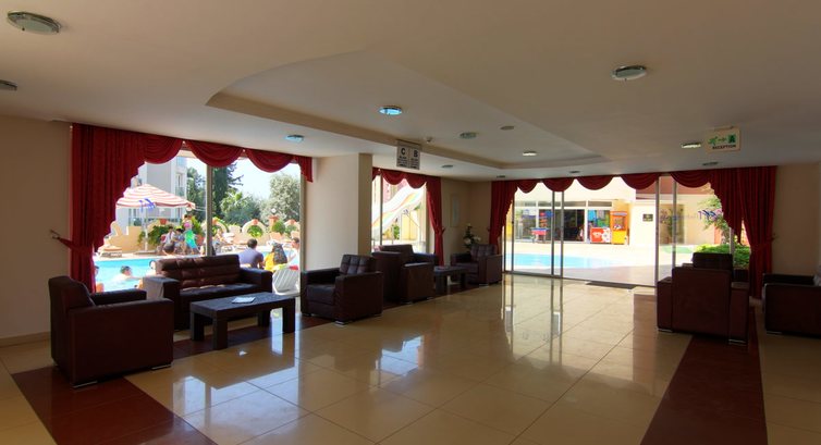 Первое впечатление по прибытию - не ждали. Никакого внимания к прибывшим: персонал не говорит по-русски, по всему видно, что мы не желанные гости, а всего лишь туристы прибывающие и убывающие, доставляющие персоналу какие-то хлопоты. В номер нас не заселяли, это мы сами заселились: девушка как-будто забыла о нас и никак не предлагала нам пройти в номер, я подошел, как мог обьяснил что мы устали и нам бы взять номер и отдохнуть. Она немного колебаясь, дала ключи и мы без провожатого пошли искать номер. Номер нормальный. Мы не первый раз в Турции и не по наслышке знаем о гостепреимстве турецких людей, но то, что мы увидели в этом отеле, нас поразило. Оказывается, в день отъезда, когда в 12 часов вы сдадите номер и с вас снимут браслет, вы уже не сможете пообедать в ресторане. Были не раз свидетелями того, как менеджер подходил к людям без браслета и просил их выйти из ресторана, а ведь некоторым туристам нужно было ждать когда их заберут на самолёт аж до 20 часов. На пляж отельный съездили один раз, не удобно подстраиваться под время отправления автобуса, ходили на городской пляж, он не далеко, хороший заход в море и песчанный. Ещё одно неудобство, это идущие на посадку самолёты на низкой высоте с интервалом 3-6 минут начиная с раннего утра, а вечером так же часто взлетают. Хотите поспать, берите беруши. К питанию претензий нет, всё согласно звёздности. В остальном всё нормально: море, солнце. Советую посетить старую Анталью ( маршрутный автобус № 08 ). Приятного отдыха!