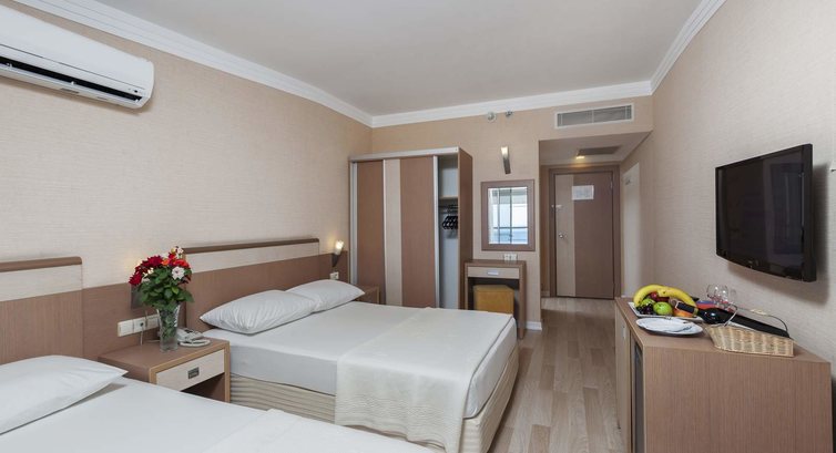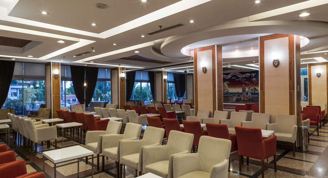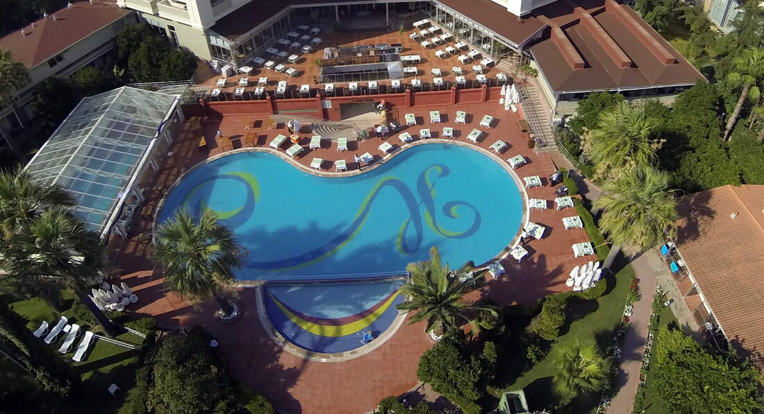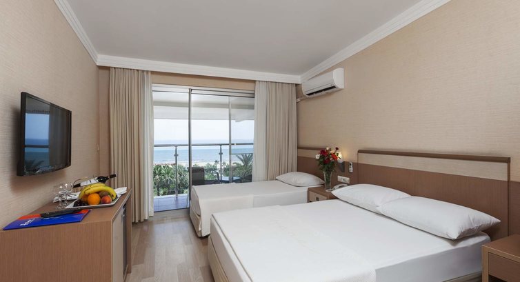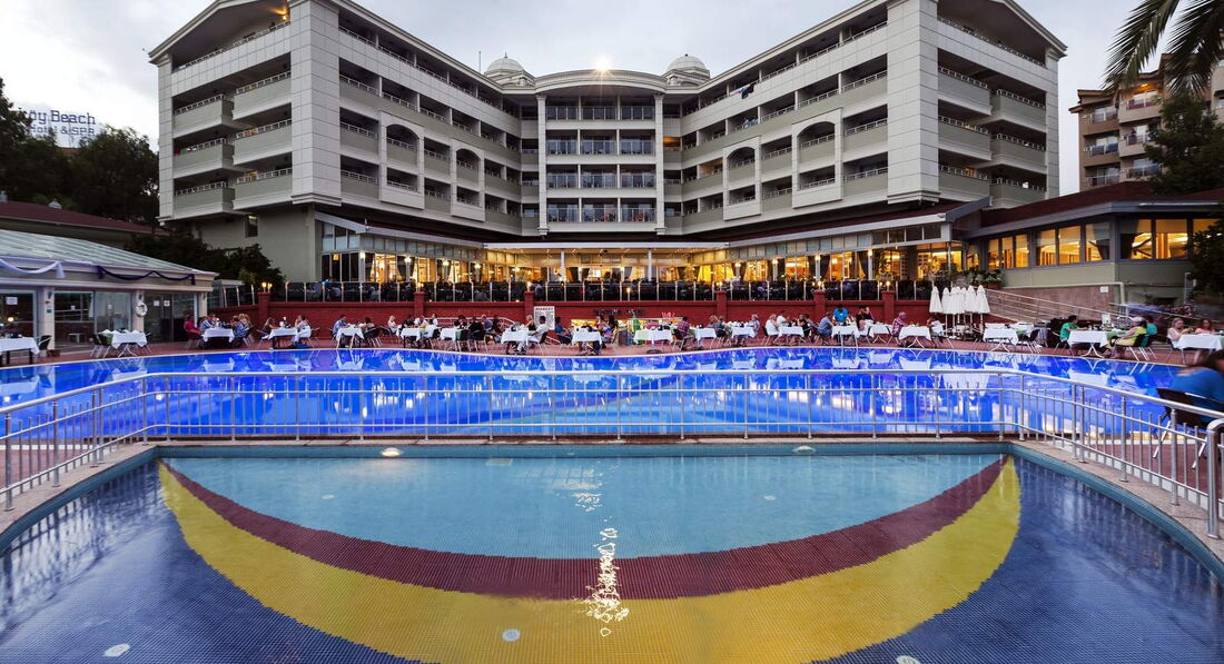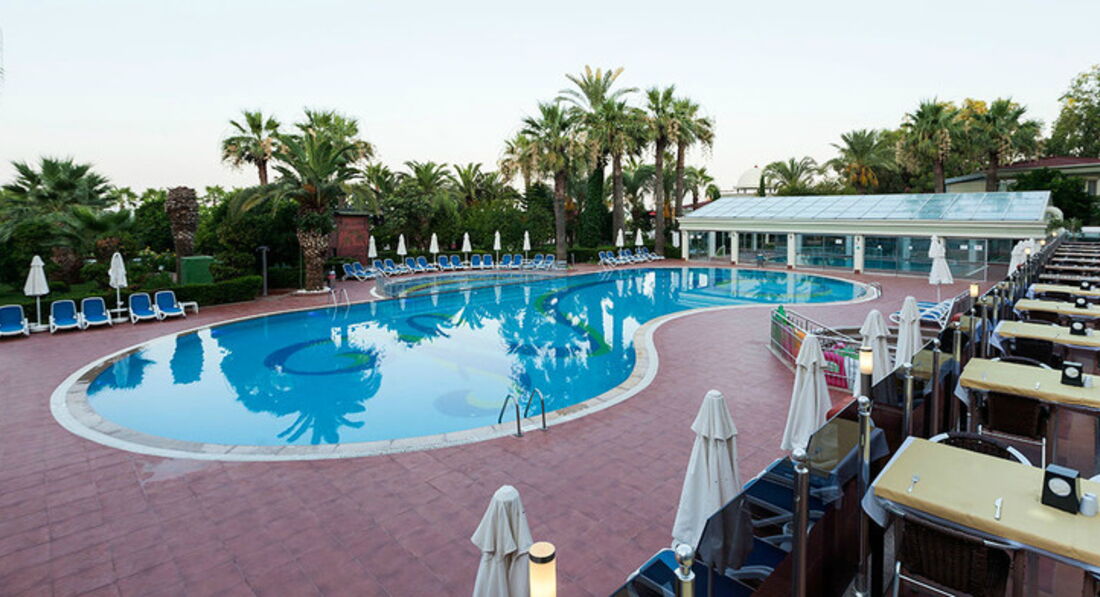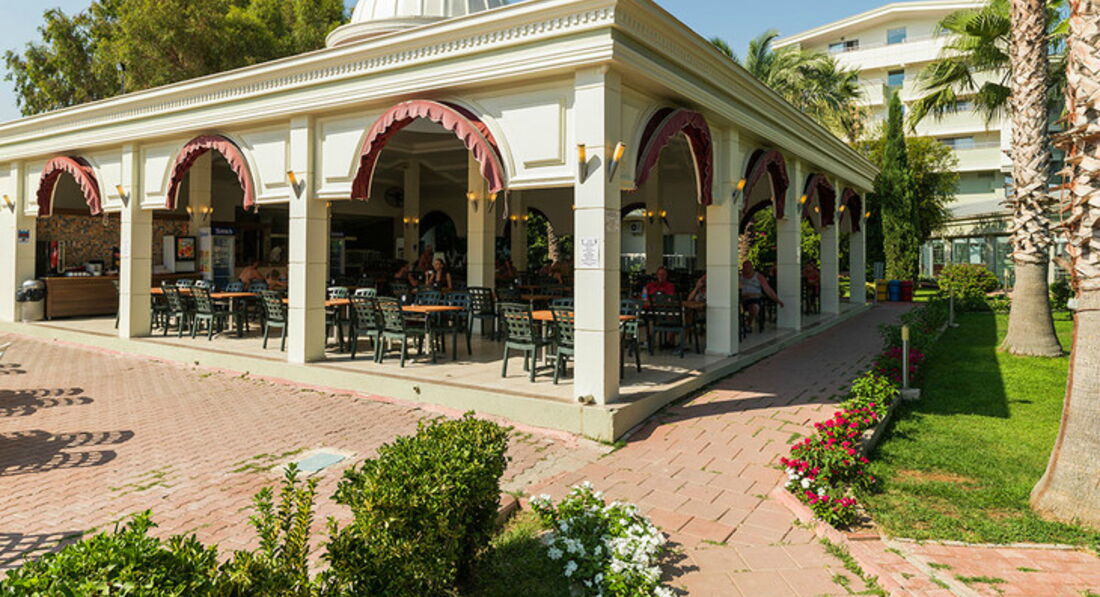 Отличный немецкий отель, с шикарной анимацией! Очень красивый такой как на картинке, правда это вторая линия, но сам пляж компенсирует расстояние до него. Чистый песок, отличный вход в море, что особенно для детей хорошо. Для взрослых каждый день анимация и дискотека (очень хрошая)! Кормят отлично 90% отдыхающих немцы, 5% русские, 5% французы как ни странно. Находится отель в 80 км от аэропорта Анталии, рядом хороший спокойный городок-променад- Кюмкёй где много магазинов, кафешек, и там же остановка такси в Манавгат (очень там понравилось просто погулять) и в Сиде, Аспендос (амфитеатр). Лучше ездить на местных маршрутках, они и дешевле( 1,5 евро в один конец) и чаще ходят. Отель хороший всем советую!