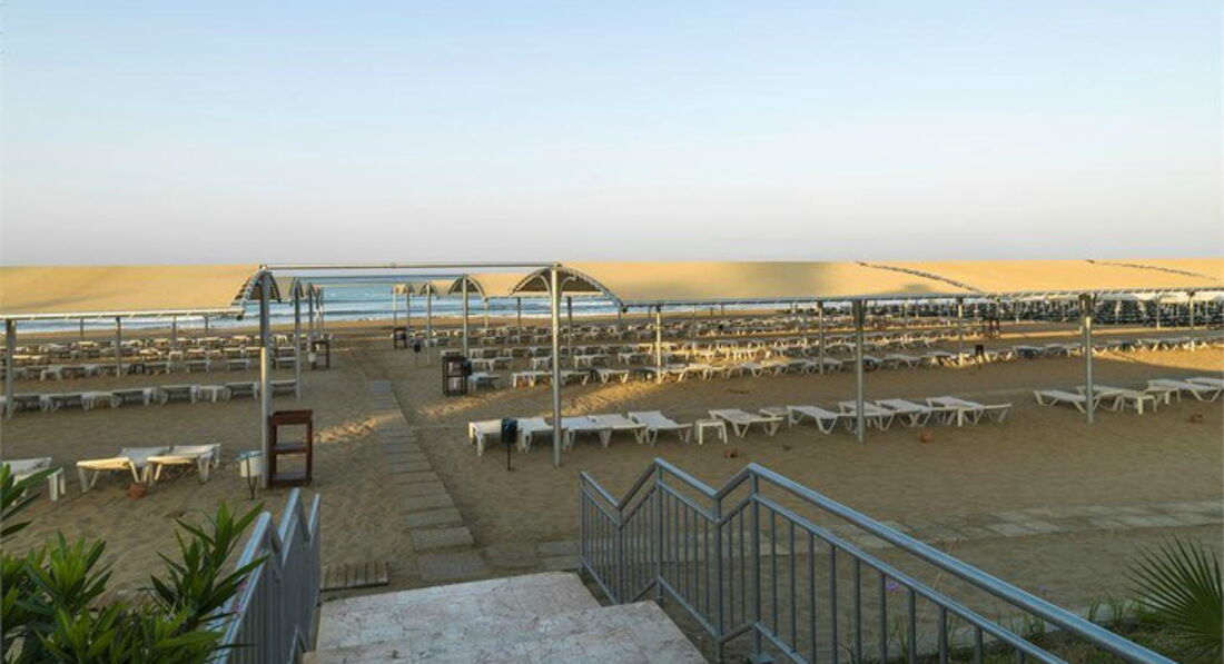 До пляжа идти около 350 метров через мостик, внизу которого в речке плавают обалденные черепахи размером с огромную сковородку и еще какие-то плавали птички. Мы брали с собой хлеб и кормили их. Это было шоу!!! Сам пляж чистый и ухоженный. Все лежаки под огромными тентами, матрасы платно. Мы брали с собой полотенца и лежали на них. Такого чтобы бежать утром и занимать лежак, а потом охранять его как в других отелях такого не было, всегда в какое время не придешь, были свободные места.