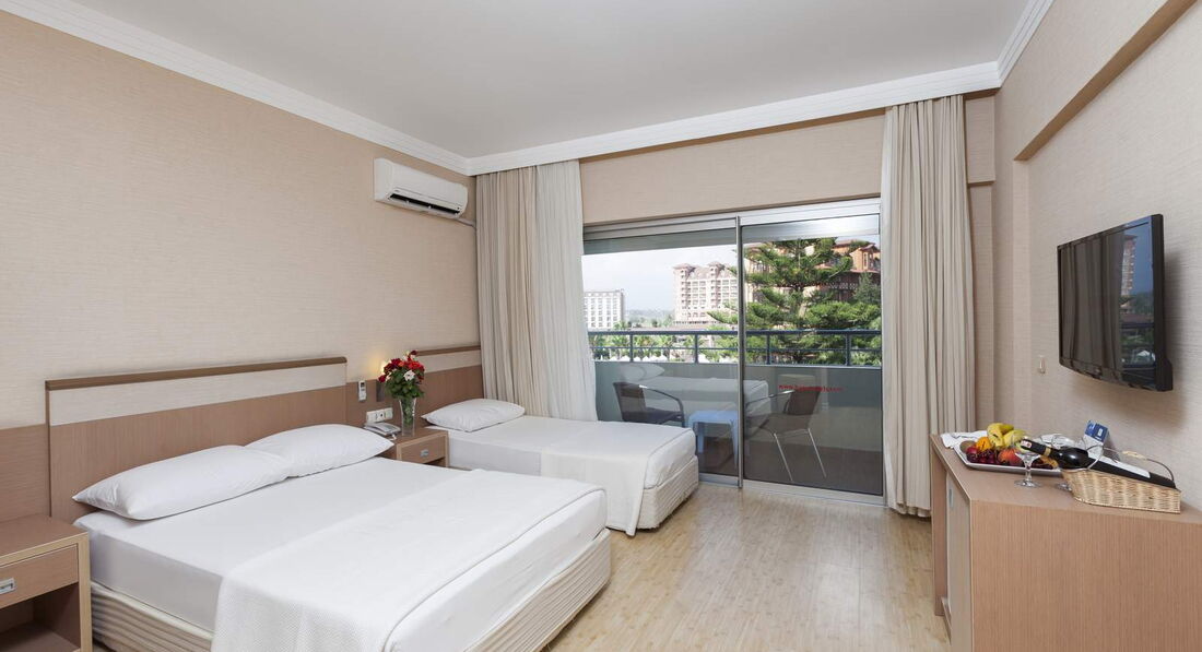 Всього в готелі 254 стандартні номери (з видом на море та гори (основна будівля)/з видом на сад (бунгало)):