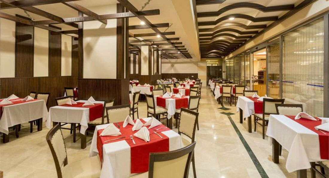 Только вернулись из этого отеля и решила сразу написать отзыв. В Турции не первый раз и есть с чем сравнивать, первый раз мы были счастливы, что нам уезжать домой!!!За размещение я поставила 5 нареканий нет, мы приехали в 8 часов утра и в 10-30 нас уже заселили,номер приличный,правда с видом на хоздвор,но нас это сильно не растроило это мелочи жизни,первая проблема у нас была с кондиционером,утром на лицо начала капать вода,потом вылетал лед и грязь, сообщили на рецепшен они сказали все ок устраним,это продолжалось 3 дня,но на четвертую ночь он перестал вообще работать, ночь была ужасная,ребенок скинул постель на пол,мы мочили всю ночь простыни,но и это не помогало,естественно всю ночь мы не спали, утром сразу к менеджеру пошли,в итоге делали кандей до обеда.Уборка была каждый день,все чистенько,оставляли чаевые первые три дня,но потом мы совсем разочаровались в этом отеле и появилась только злость и ненависть ко всем туркам.Еда это просто ужас,первые три дня мы еще воспринимали все нормально,но всю неделю есть омлет на завтрак,через неделю можно закукарекать,меню всю неделю одно и тоже,если сегодня вечером была рыба, завтра салат с этой рыбой,это тоже можно пережить,но очереди за едой выстраивались как в голодный год,такого мы не видели нигде.Обслуживающий персонал просто ужас,заказали колу,все можно забыть, уже поужинали а колы все нет,мы не гордые пошли сами к бармену,так нет, они не дают,говорят официант есть для этого,потом дали 1$ все отлично весь вечер он возле нас плясал,на следующий день таже история,он нас не знает.Посуда на первый взгляд чистая,но однажды мы увидели на стакане губную памаду,а другой раз стаканы воняли,даже руки после этого стакана воняли.Столы около бассейна после ужина всегда грязные,они уберали скатерти и люди после анимации приходили пивка попить а столы грязные и оставались такими до завтрака,на завтрак они их снова застелали скатертями не вытирая,мы специально проверяли, вечером на нашем столе была пролитая кола,на следующий вечер мы снова сели за этот стол, все так и осталось.И скатерти у них грязные,мы пришли на ужин,сели за стол а вся скатерть в кетчупе,лично видела как они убираются,крошки рукой смахнул и пошел.Пришли однажды на поздний завтрак,успели кофе взять в автомате,больше ничего, они ходят и ложки все убирают,а ровно в 10-00 свет в зале бах и вырубили.На ужин один вид мяса на гриле,в очереди стоять приходилось минут 20-30,причем не только за мясом,обсолютно за всем,все это без преувеличения.Каждый день картошка фри,рис,макароны,мясо не каждый день,один день была печень,на следующий день рыба,типа селедка на гриле,на третий день опять печень,потом мясо на гриле,так там в столовую люди пришли за час до открытия и выстроились в очередь,а когда открылись все как ломанулись,это просто было унизительно!!!Еду они не докладывают,вот что выставили то и есть,если кончилось они просто убирали чашку,кто успел тот и съел.А Турецкая ночь это вообще комедия:из украшения-Турецкий флаг,мясо как для шаурмы,правда совсем не съедобное,и шашлык,правда очень вкусный,но давали его по 4-5 кусочков,сами стояли и выдавали,мы попали на 2 Турецких вечера,на втором меню было тоже самое,правда шашлык брали сами сколько хотели.Короче говоря такой сервис мы увидели первый раз,из России мы были одни,все остальные немцы,но и они постоянно в