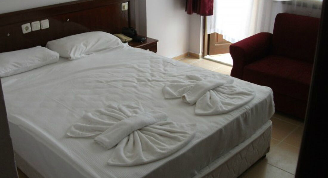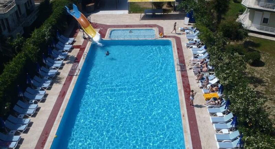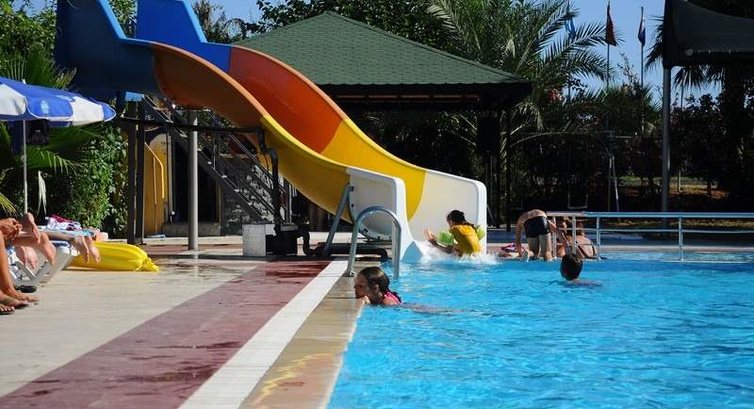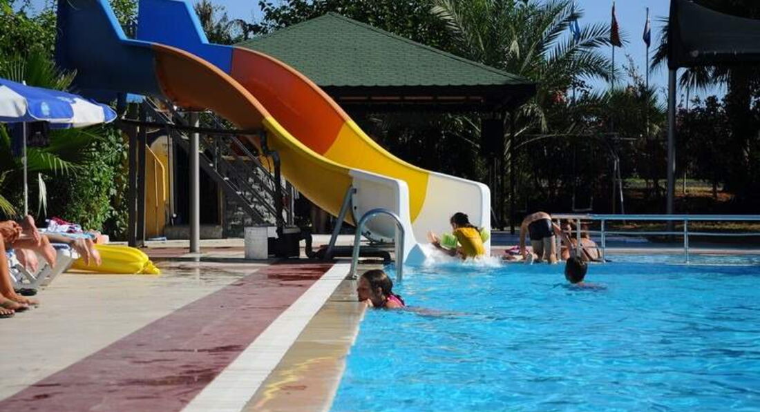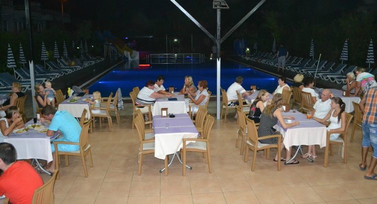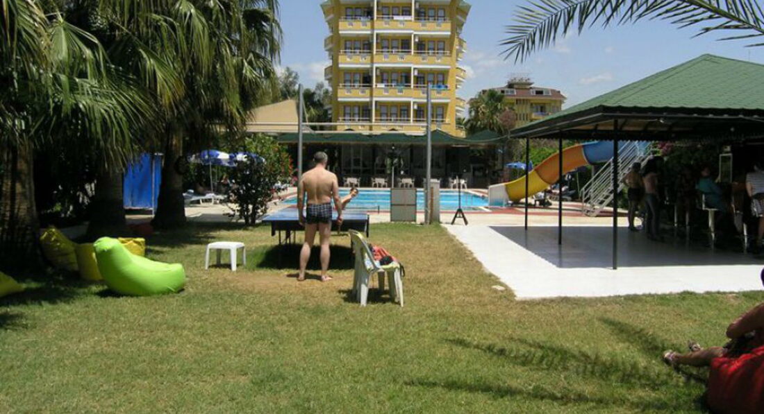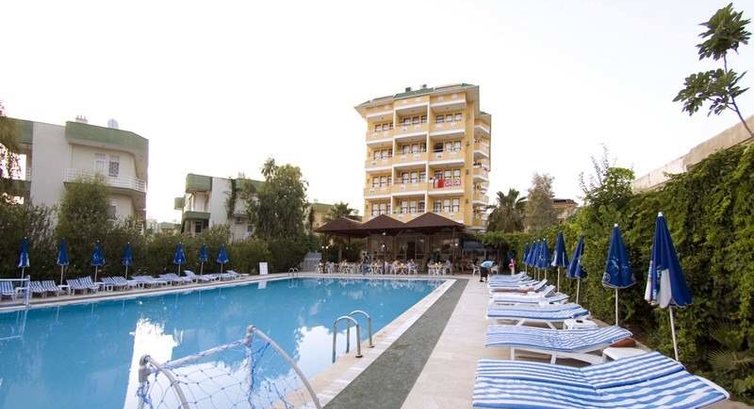 Приветсвую всех кто собирается в этот отель. Отдыхали две майские недели в количестве 6 чел., включая 3 детей 4-5 лет. Начну с плюсов: Отель очень оправдывает свою троечку- очень хорошая тройка для этой ценовой категории. Персонал очень вежливый, улыбчивый, неназойливый. Кормят хорошо для тех кто ест все подряд. Маловато мяса в чистом виде, т.е оно бывает в баклажанах, картошке, зелени. За две недели готовили куриный шашлык, который расходился мгновенно. Мало сладкого.. только печенки в полдник сухие, на ужин политые сиропом. Фрукты апельсины, арбузы, яблоки. На завтрак в основном вареные яйца иногда омлет, выпечки нет. Хороший пляж, вход в море, лежаков хватает всем - в 6 часов занимать не надо.Лежаки с матрацами бесплатно, полотенец нет. Спиртное: пиво хорошее, джин -фу, раки на любителя, вино противное и красное и белое( на наш вкус),водка нормальная ( но наливают как последнее от сердца отнимают).Ровно в одиннадцать все заканчивается. Контингент: русские, чешская республика, украина, беларуссия, турция. В последние дни нашего отдыха оставались одни бабушки. Очень хороший анниматор Нури. постоянно всех поднимает, уговаривает чем-нибудь заниматься,но люди лежат мертвыми телами. Вечерами кто хочет на диско Нури предлагает ехать в Аланию за 10 дол.Так что, если вы активны отдых вам понравится. Рядом по средам приезжает рынок, на котором все дороже чем в магазинах, кроме фруктов. Недалеко есть парки и детские площадки, магазины с фиксированными ценами для покупки сладостей, но в тур.лирах. Рядом остановки автобусов , котроые идут до Алании за 2,5 лиры, дети бесплатно. На территории ходит женщина Фаина зазывает всех в хамам за 25 дол. ( обычный приотельный турецкий хамам).