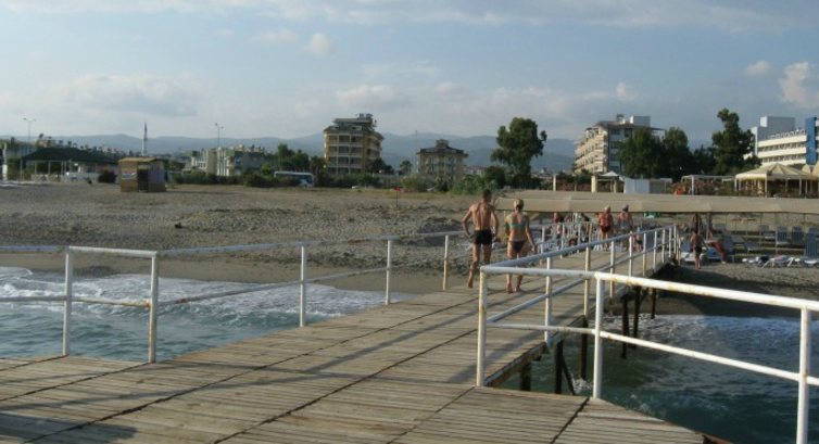 Ну а если надоело сидеть на месте, переходите улицу, садитесь на автобус №50 и погуляете по Алании. Автобус привезет Вас на конечную остановку, на ма-а-аленькую площадь, сразу спуститесь вниз, потом чуть по диагонали направо и вот за поворотом Вайкики - маленький магазинчик с фиксированными ценами. Принимают в оплату всё: лиры, доллары, евро. А потом шагайте налево в порт поглазеть на невиданное количество яхт разных стилей и мастей, можно искупаться на пляже, посидеть в кафе... Ну или можно дойти до пляжа Клеопатры, провести там весь день... Обратно возвращаемся на ту маленькую площадь, садимся на любимый №50 и не забываем напоминать название своего отеля. Дорога обойдется по 3 лиры или 2 доллара с человека (в лирах дешевле, ведь 1 доллар = 2,2 лиры) в каждую сторону.