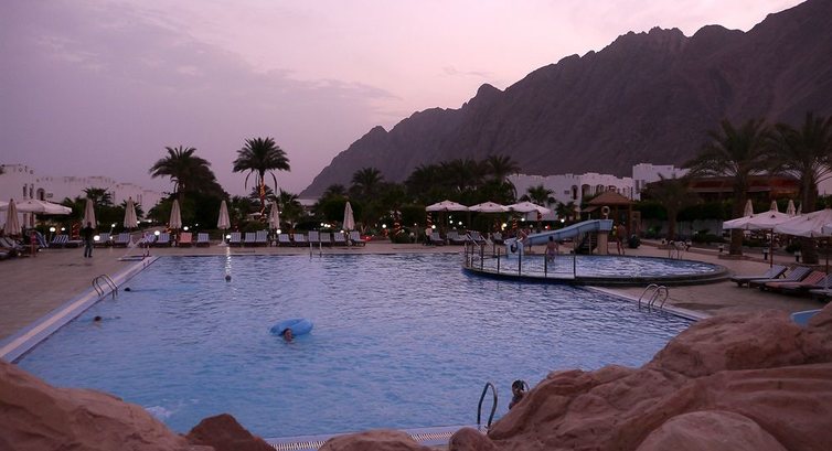 Отдыхали вдвоем с девушкой. До этого в Египте бывали неоднократно в 5*, так что сравнивать есть с чем. Поехали в бюджетный отель, так как на тот момент финансы были ограничены, а отдохнуть на Красном море хотелось. От аэропорта до отеля ехали вдвоем на отдельном трансфере (обычная легковушка, заранее не заказывали). Ехать долго, но не утомительно. Отель располагается "на краю света" (рядом только море и горы). По приезду нас сразу же заселили в номер. Не доплачивали, но получили прекрасный номер на втором этаже с видом на бассейн в центре территории отеля. В номере было чисто, вся техника и сантехника функционировала нормально. Нам очень нравилось иногда сидеть на балконе и смотреть на заходящее за гору солнце попивая вкуснятину из "дьютика".