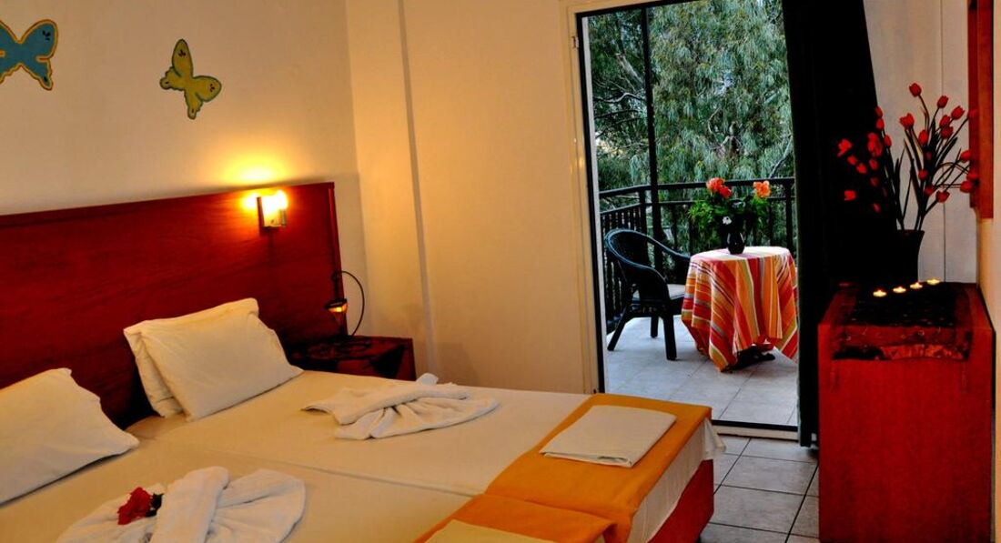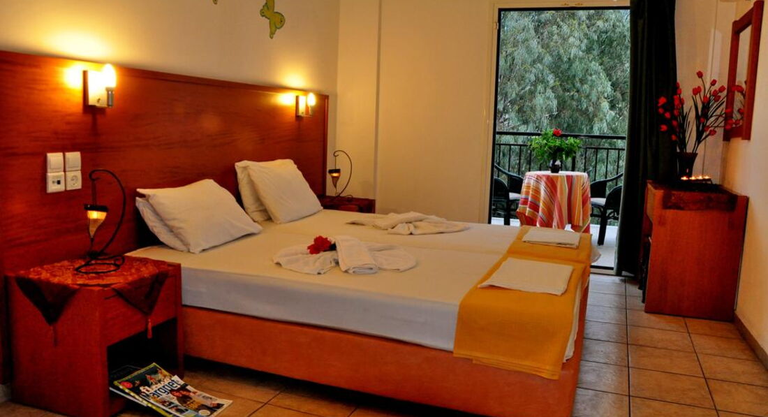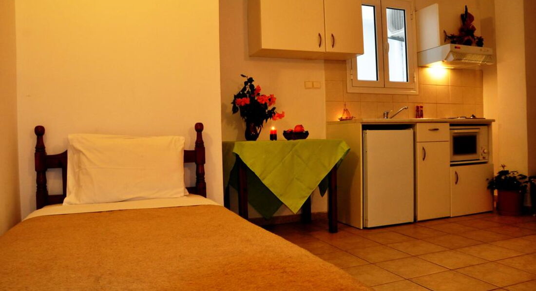 Типи номерів: • 2 Studio 2 pax (0/3 поверх, 15 м2, вид на сад, гори, околиці або вид на море, макс. розм. 2 чол., одна спальня та ванна, обладнаний кухонний куточок, балкон – в 1 номері, тераса – в 1 номері, вікна у всіх номерах). • 9 Apartment 3 pax (-1-3 поверх, 25 м2, вид на околиці, макс. розм. 3 чол., дві кімнати: одна спальня та вітальня, розділені міжкімнатними дверима, обладнаний кухонний куточок, балкон – у 6 номерах, тераса – у 3 номерах, вікна – у всіх номерах). • 10 Apartment 4 pax (-1/1/2/3 поверх, 30 м2, вид на околиці, сад, гори або вид на море, макс. розм. 4 чол., дві кімнати: одна спальня і вітальня, розділені міжкімнатною дверима, обладнаний кухонний куточок, балкон – у 8 номерах, тераса – у 2 номерах, вікна – у всіх номерах). • 3 Apartment 5 pax (-1/1/2 поверх, 35 м2, вид на околиці, сад, гори або вид на море, макс. розм. 5 чол., дві кімнати: одна спальня і вітальня, розділені міжкімнатними дверима, обладнаний кухонний куточок, балкон – у 2 номерах, тераса – в 1, вікна – у всіх номерах).У номері: • душ • індивідуальний кондиціонер (безкоштовно) • електрочайник • міні-холодильник (безкоштовно) • 2 стільці • wi-fi (безкоштовно) • сейф (платно) • сервіс у номері (платно)