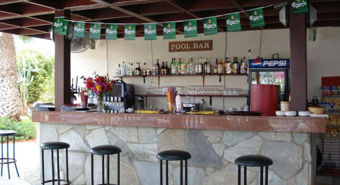 Отвратительное место! Хотелось плакать, когда я увидела где нам придётся жить 12 дней:((( Зайдя в номер мы почувствовали ужасный запах, поняли что это было, только когда сняли и убрали с кроватей непонятные пледы-покрывала (видимо на них не раз загорали на пляжах,но персонал не знал что их можно постирать). На столе и тумбочках мусор пыль от прежних жильцов не была протёрта, за тумбочкой вообще паутина росла! Муравьи ходили по комнате своими протоптанными тропами ( ковровое покрытии на полу тоже никогда не пылесосили) Заляпанные стены! Рваные простыни и полотенца. Батарейки не работали ни в пульте от кондиционера, ни от телевизора. Переходник в розетку пришлось брать в залог за 2 евро. Холодильник предложили поставить в номере платно, но нам совсем не хотелось этому отелю платить ни копейки. Кондиционер только морозил комнату, на другие температурные режимы не реагировал, но остыть от зноя можно только у себя в номере, больше в этом отеле нигде не включают кондиционеры. Бармены и официанты- отдельная история! Наш ребёнок принёс в 1-й день бутылку спрайта из номера, так два бармена налетели и выдёргивали из рук эту бутылку, как потом выяснилось со своими напитками вообще нельзя находится возле бассейна и бара. Охранники еды, как назвала моя мама официантов, тщательно следят кто сколько съел и не пронёсли ли мы за пазухой стакан из номера на бассейн. Питание скромное, на завтрак каждый день всё одно и тоже. Обеденное меню тоже можно выбрать одно из пяти блюд (съедобных только 2) Ужин разнообразнее, но лучше куда-нибудь убежать из отеля и вкусно поесть! Кстати, возле бассейна когда стемнеет, бегают крысы. Горничная тоже была недовольна когда придя однажды на "уборку" мы её задержали тем что были в душе. Видимо ни они для нас, а мы для них! Короче хорошие впечатления, которые всё-таки остались, это- море и вечерние прогулки по Протарасу и Айя-Напе. В отеле совсем не хотелось находиться.