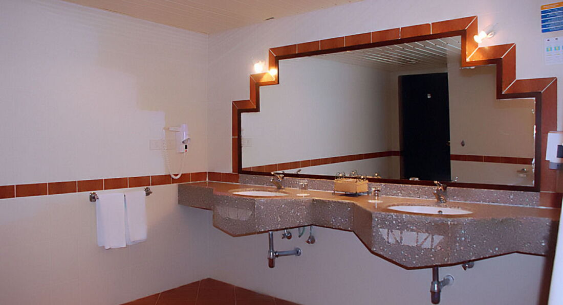 Провели нас в номер (на первом этаже,прямо возле ресепшенв),номер 100 какой-то),сразу начались проблемы с замком,пока я с ним разбирался,слышу жена верещит и стоит ногами уже на кровати,я смотрю а по полу гуляют огромные муравьи,пришлось их выгнать :),говорю жене,то дверь просто открыта была,заползли,потом она пошла в душ и от туда орет,я захожу там опять куча муравьев,я еще как-то могу с ними жить,а вот жена нет,пошел менять номер,сказали только завтра.С горем пополам переспали в этом номере,предварительно выгнав всех муравьев на улицу и подложив под двери покрывало (заткнули им вход в номер :) )