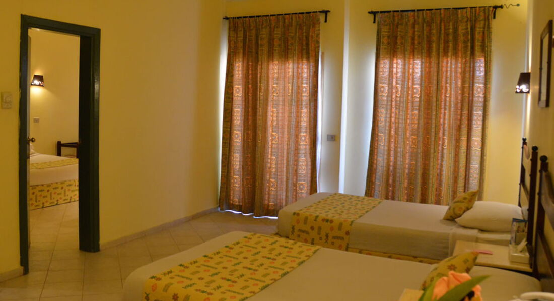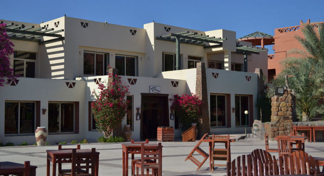 Отель недалеко от аэропорта в бухте Набук. На первой линии, шикарнейший коралловый риф под боком, на морском пейзаже виднеется остров Тиран. Территория большая, состоит из двух этажных красных корпусов, есть мини зоопарк. Были отдельный рестораны под запись. Ходили в индийский, не понравилось - очень остро и в конца дали миниатюрную мороженку))))