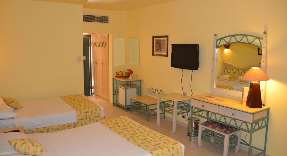 Номер среднего размера,чистый,в принципе нормальный,но не работал сейф,я 4 раза в течении двух дней просил на ресепшене починить его,но раз пришел мастер 20 минут его поколупал и ушел,в итоге я понял,что только трачу время и нервы. Телевизор работал только в первые два дня нашего пребывания в этом номере,туалет смывался очень плохо,с бачком проблемы были,я сам его разобрал,но полностью не устранил проблему,нужен был инструмент и скорее всего новый сливной механизм,но стало немного лучше - это жесть,отвалить 1200$,приехать на "Все включено" и самому ремонтировать унитаз =)) Ну да ладно...