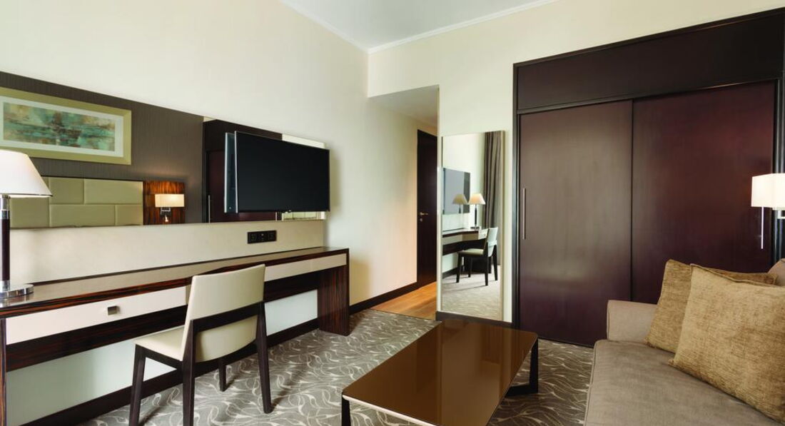 Типи номерів: • 96 Deluxe Room – площа: 28-35 кв.м., розташовані з 4 по 14 поверх, максимальне розміщення 2+1, одна кімната, ванна кімната, балкон. • 40 One Bedroom Suite – площа: 52 кв.м., розташовані з 4 по 14 поверх, максимальне розміщення 2+1, дві кімнати, вітальня, спальня, міжкімнатні двері, ванна кімната, балкон. • 1 номер для осіб з обмеженими фізичними можливостями, надається інвалідне крісло.У номері: • ванна кімната • халати та тапочки (безкоштовно, на запит) • фен • центральний кондиціонер • супутникове телебачення (1 російський канал, музичні канали) • телефон • міні бар (платно, вода – безкоштовно) • праска та прасувальна дошка (за запитом, безкоштовно) • набір для приготування чаю та кави (безкоштовно) • Wi-Fi (безкоштовно) • сейф (безкоштовно) • прибирання номера: щоденно • зміна білизни: двічі на тиждень • додатковий сервіс номерів (платно)