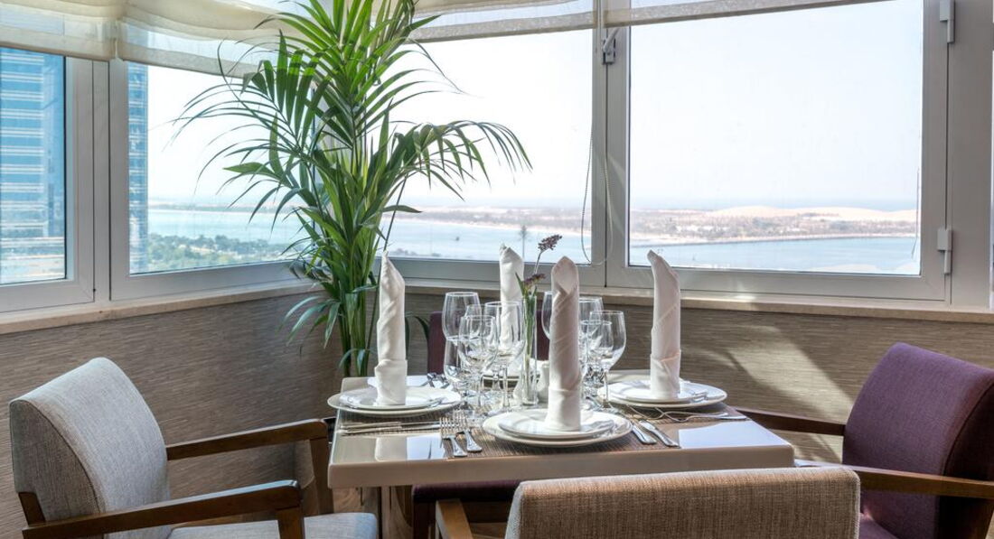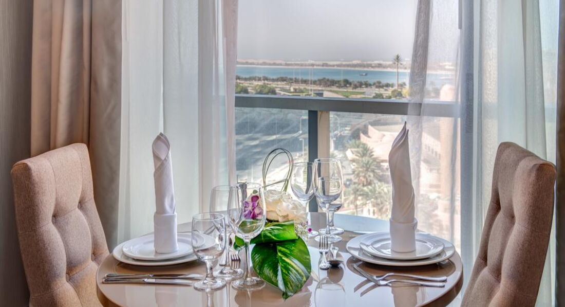 Територія та послуги: • Ресторан Lavender (міжнародна кухня, 24 години) • Бар у лобі Biscuit corner • Відкритий басейн площею 150 кв.м., температура води не контролюється • 2 конференц-зали (платно, до 60 чол.) • Обмін валюти • Інтернет кафе (платно) • Паркування (платно, 20 AED) • Wi-Fi на всій території готелю • Трансфер до мечеті Sheikh Zayed, парки Ferrari та Yas Waterworld, торговий центр Marina Mall • Пральня платно Розваги та спорт: • Фітнес центр (безкоштовно) • Тренажерний зал (безкоштовно) • Бібліотека • Нічний клуб • Дартс платно • Більярд платно • Сауна безкоштовно • Турецька лазня безкоштовно • Масаж платно Для дітей: • Няня платно • Дитячий басейн відкритий • Дитячі стільці у ресторані • Дитяче ліжечко (за запитом, безкоштовно) Живлення: • BB – сніданок шведський стіл • HB – сніданок, обід чи вечеря, шведський стіл • FB – повний пансіон, шведський стіл Пляж: Надається трансфер на відкритий муніципальний пляж Корніш. До оплати приймаються кредитні картки: Visa, MasterCard, American Express.