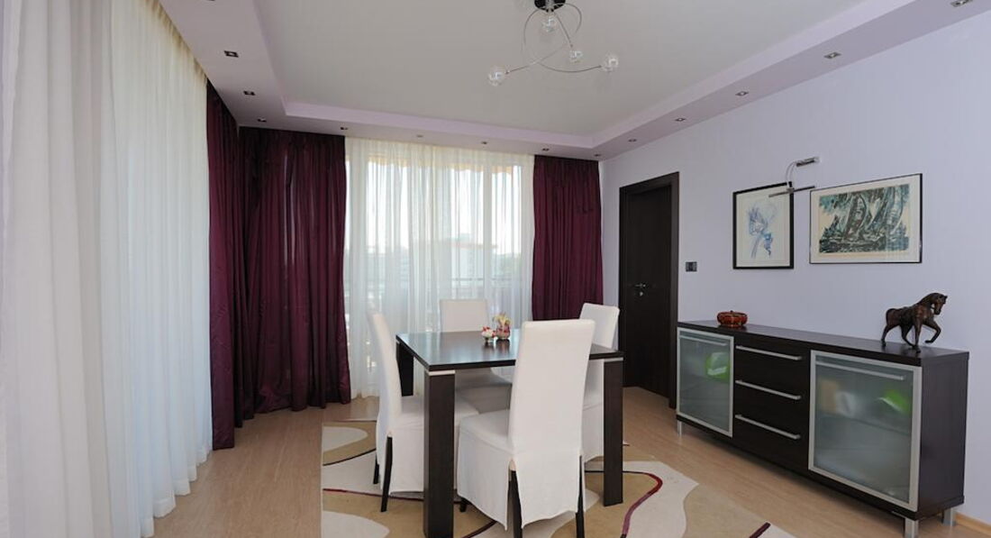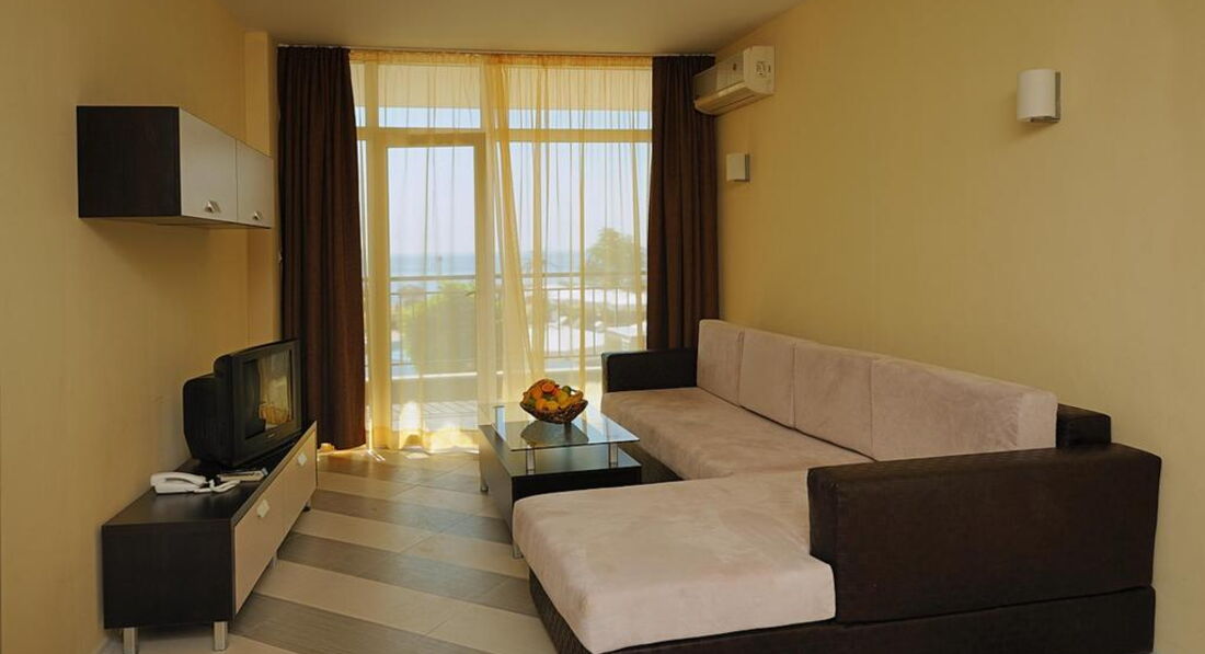 Типи номерів: Apartment 1 bedroom Sea View/Park View – максимальне розміщення: 2AD+2CH, 3AD.У номері: Всі номери обладнані вітальнею та кухнею, з вікон відкривається чудовий краєвид на море. ванна кімната з ванною або душовою кабіною та туалетним приладдям; балкон; ТБ із кабельними каналами; швидкісний Інтернет; холодильник; кондиціонер; телефон