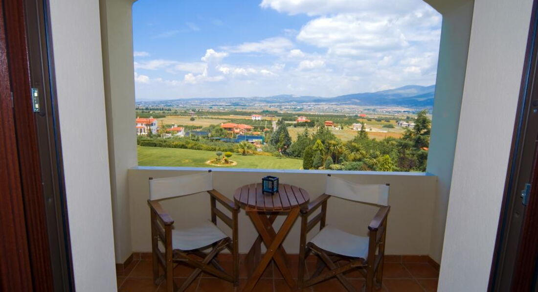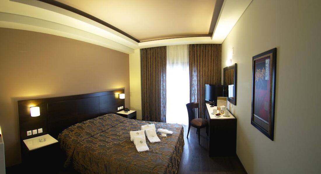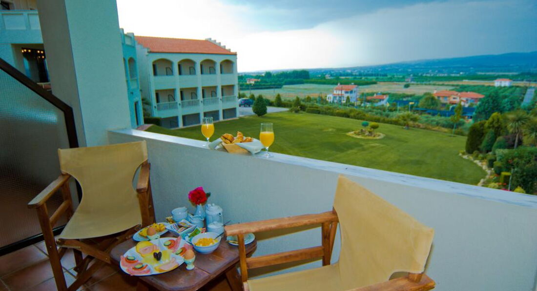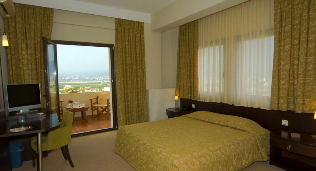 Готель розташований на пагорбі з панорамним видом на море та м. Салоніки. Комфортні номери, бар, басейн, інтернет, спокійна атмосфера.