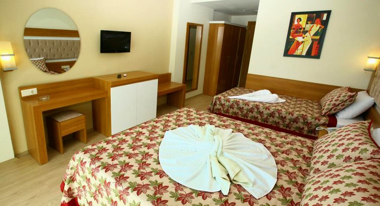 Начнем с того что отдых был долгожданным и как только приземлились нас встретила отличная солнечная погода! добирались около 2.5 часов .По приезду заселили сразу на третий этаж.в отеле находились только утром и вечером т.к. ездили на различные экскурсии почти каждый день. кормят хорошо голодными никогда не были курица рыба гарниры салаты и зелень всегда есть. сладостей тоже хороший выбор но мы не сладкоежки. территория средняя по размеру с двумя бассенами и горками там же бар с напитками и перекусом в виде гамбургарев картошки фри плюс имеется женщина которая готовит гезлеме лепешки.имеется хамам недалеко от ресторана пользовались пару раз бесплатной сауной.ходили в близжашйи поселок за покупками там есть местные не большие супермаркеты. в отеле записывают на бесплатный ужин в рыбную или турецкю кухню мы ходили на турецкую все понравилось .ну и конечно супер соленое турецкое море штормило иногда но это нам н помешало плюс шоколадными были уже на третий день.если не обращать внимание на мелочи то отдых удался .выезжали ночью дали с собой ланч боксы .отель соответсвует заявленной цене