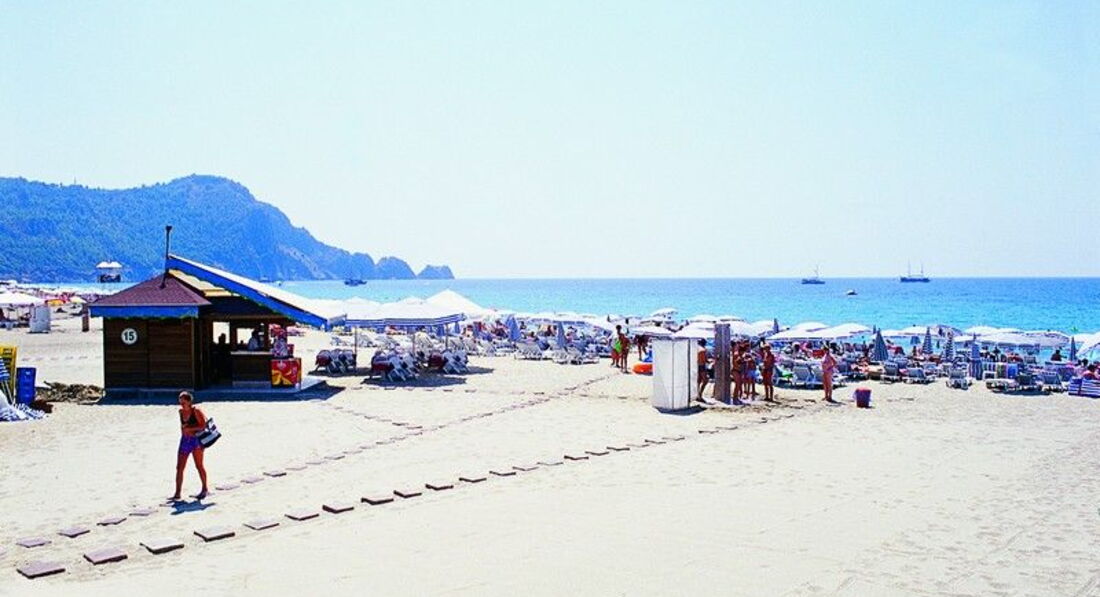 Действительно достойный, много места, душ, туалеты, переодевалки, бары с вай-фай. Тянется вдоль уютной набережной, каждый день можно выбирать, где отдыхать. Мы брали 2 шезлонга и зонтик за 15 лир на весь день. Пару раз лежали на своей циновке и полотенце.