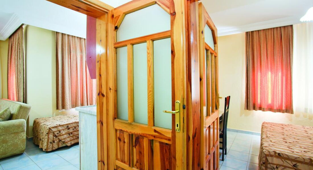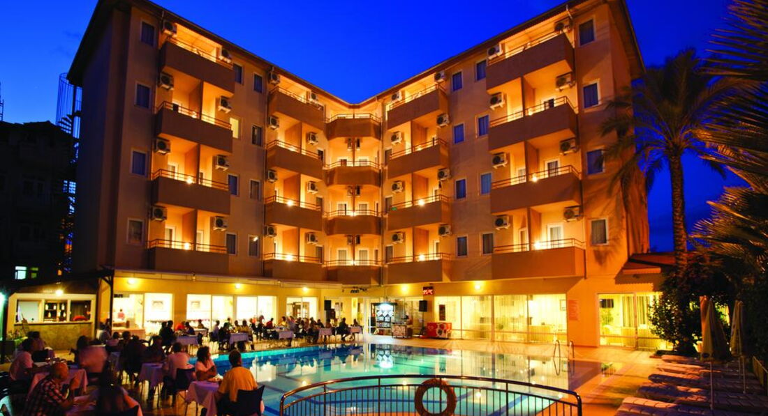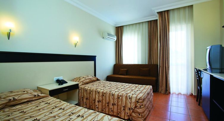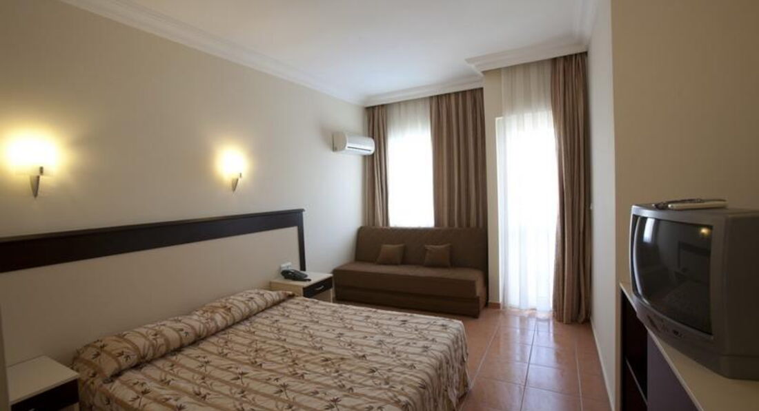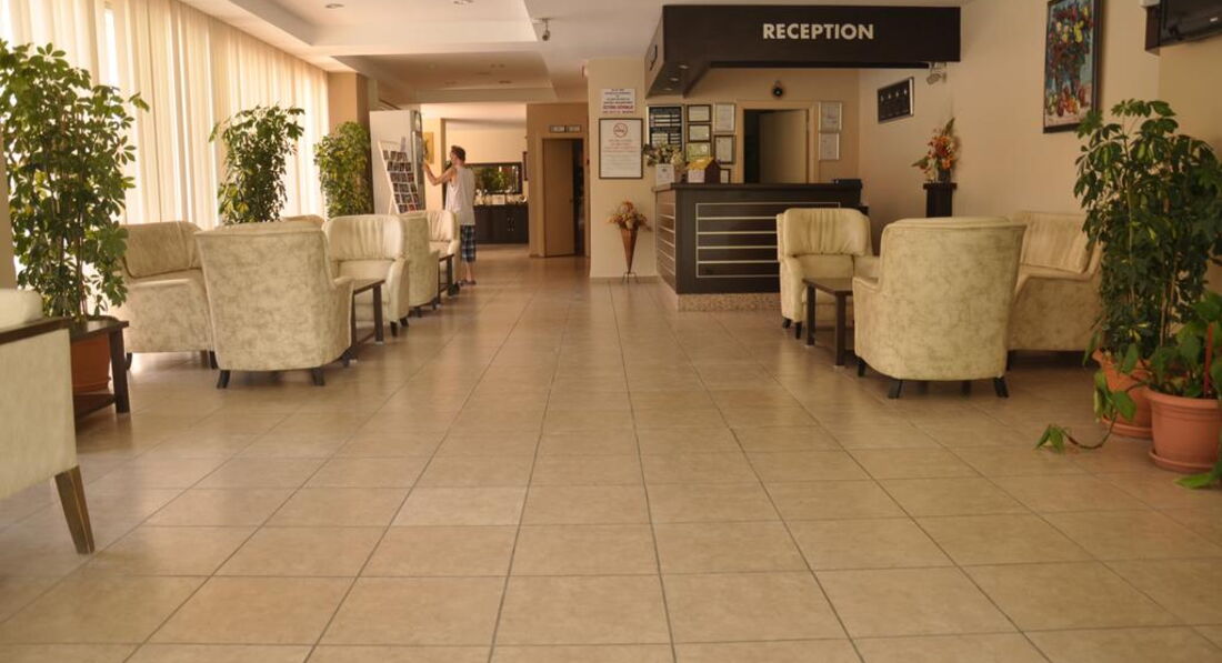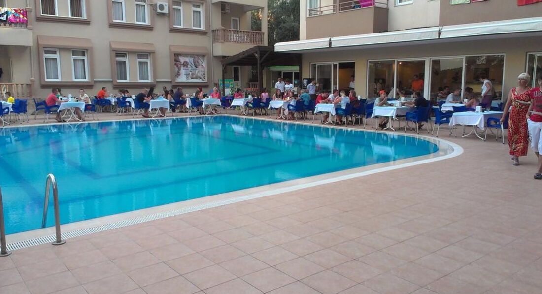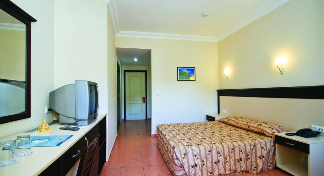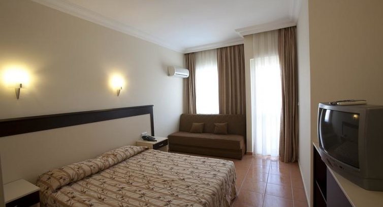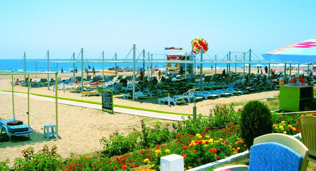 Была в отеле в октябре 2006 г. То ли сезон заканчивался, то ли там всегда так. Хочется быть объективной, но ... Из положительного - это уборка, смена полотенец. В номере всегда было чисто, полотенца меняли регулярно. Шампуньки и прочее тоже всегда было. Правда, раз в 3 дня я оставляла по доллару. Но за этот доллар мне такую красоту на кровати наводили, которую я только в рекламных проспектах видела. Питание тоже было. ТВ есть и на русском языке. Кондиционер индивидуальный - что очень хорошо. Фен. Ванна. Балкончик. Про пляж. От отеля до пляжа идти минут 20-25. Но ходит автобус после завтрака на пляж, перед обедом с пляжа, потом после полдника и обратно на ужин. Пляж очень хороший. Это правда. Песок. Лежаки, матрасы, тенты - все бесплатное. Правда, в октябре уже никто не бежит к вам с матрасом - надо пойти и самому взять (но это не трудно). Вход в море ровный. Места свободные есть всегда (в июне тоже было свободно - была в другом отеле, но пляж у них один). Теперь остальное. Когда въехала, номер мне дали с двухспальной кроватью, угловой, как я потом поняла - сам номер хороший - получается большой и светлый из-за того, что в нем только одна это большая кровать и окошки выходят на 2 стороны. Но в номере было треснуто зеркало (то, что над столиком, не в ванной). Пошла на ресепшн, объяснила на смешанном немецко-английско-турецком (по русски там никто и ничего не понимает), что зеркало треснуло, на что мне очень милый ресепшионист ответил: "А что - вас это волнует". Я сказала - да! Как я поняла - его это ничуть не волновало. На следующий день он мне дал ключ от другого номера (соседнего) и предложил туда переехать. Когда я вошла в тот номер, я сразу поняла, как мне повезло с тем, что мне дали в день приезда. Площадь вроде бы та же, но там стояло 2 односпальных кровати и еще диван. То есть теснотища ужасная! Мне одной спать сразу на 3-х постелях не захотелось, так что я просто сняла зеркало со стены этого номера и перенесла в свой просторный. А треснутое отнесла в этот тесный. На следующий день (видно, после сообщения уборщицы) очень удивленный ресепшионист остановил меня и спросил - как мне удалось поменять зеркала?! Видно им в голову не приходило, что так просто можно это сделать! А в остальном - ну очень милый молодой человек!! :)) Основной контингент - немцы. Русские были кроме меня только 2 дамочки. Питание грустное. Оно очень однообразное. А главное - супервегетарианское. Могут то, что не доели, дать в следующий раз. Над мясом (единственной плошечкой на всех) трясутся. Я ловила момент, когда повар отходил на кухню и бежала накладывать себе горку мяска (правда, в основном это курица или индейка). В июне отдыхала в Веге, так там кормили лучше за меньшие деньги (в июне 2006 там было очень дешево). А так официанты не наглые. Нормальные ребята. Напитки бесплатно с 10 до 23.30 (ну примерно так - может до 24 - не помню). Есть вечерний суп, но я его так и не попробовала. Вода питьевая всегда в кулере-бойлере стоит. Кофейный автомат на ночь не отключают. Я приходила иногда в 2 ночи и шла пить кофе (в темноте, конечно, но там свет с ресепшена падал), никто не было против этого. Да, и чайные пакетики и сахар всегда были на месте. Что было, то было. За отелем еще только одно небольшое здание и большое, большое поле, на котором местные пастухи пасут милых таких овечек. Они с утреца (вообще-то в разное время) табунчиком проходят мимо (