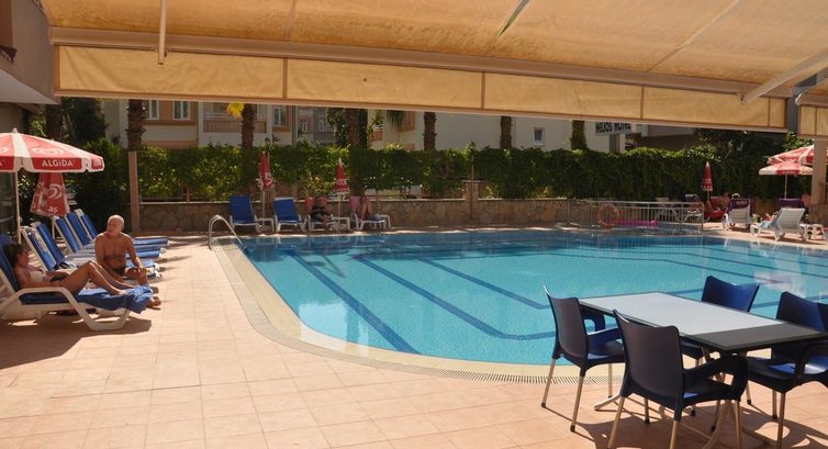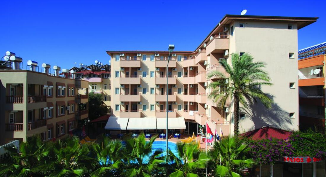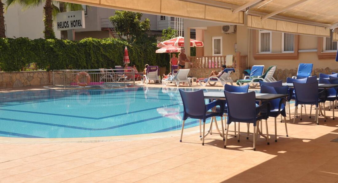 Много раз слышала от своих друзей и знакомых, что в Турции отель должен быть не менее 5 звезд. Так и поступала. Но побывав в Helios, полностью изменила свое мнение. Отдыхала в этом отеле с 1 по 10 мая 2015 года. Отель небольшой, но очень уютный и чистый. Небольшая территория, но и во многих 5-звездочных отелях территории зачастую тоже не большие. Особо хочется сказать о домашней, дружественной атмосфере, которая царит здесь. Очень приветливый и общительный персонал. Да, по-русски говорят мало, потому что, основная масса туристов немцы, но мы прекрасно общались на английском и турецком. Моего скромного турецкого хватало с лихвой. Комнаты убирали каждый день. И не просто убирали. Каждый день приходя в номер, я восхищалась тем, как убран и украшен лебедями, бабочками и розами мой номер. Всему персоналу отеля огромное спасибо, это и администраторы, и горничные, официанты и повара, сотрудники пляжа и хамама. В ресторане готовили по домашнему. Да не очень большой ассортимент, но и туристов в этот период было мало. Все вкусно и аппетитно. Фрукты были каждый день. Дорога до пляжа занимала всего 10 минут. Пляж чистый, Не далеко от отеля множество магазинчиков и ресторанов. До Кумкей 10 минут пешком. Да и до центра Сиде и Манавгата на долмуше можно быстро доехать за 1,5 доллара. WiFi в отеле платный 2 евро день. На пляже в ресторане можно покушать, но за деньги. Правда не дорого. Наверное это единственное отличие от 5-тизвездочных отелей. Очень была удивлена, когда почти весь персонал вышел меня провожать в день отъезда.Обязательно вернусь в этот отель еще не один раз.