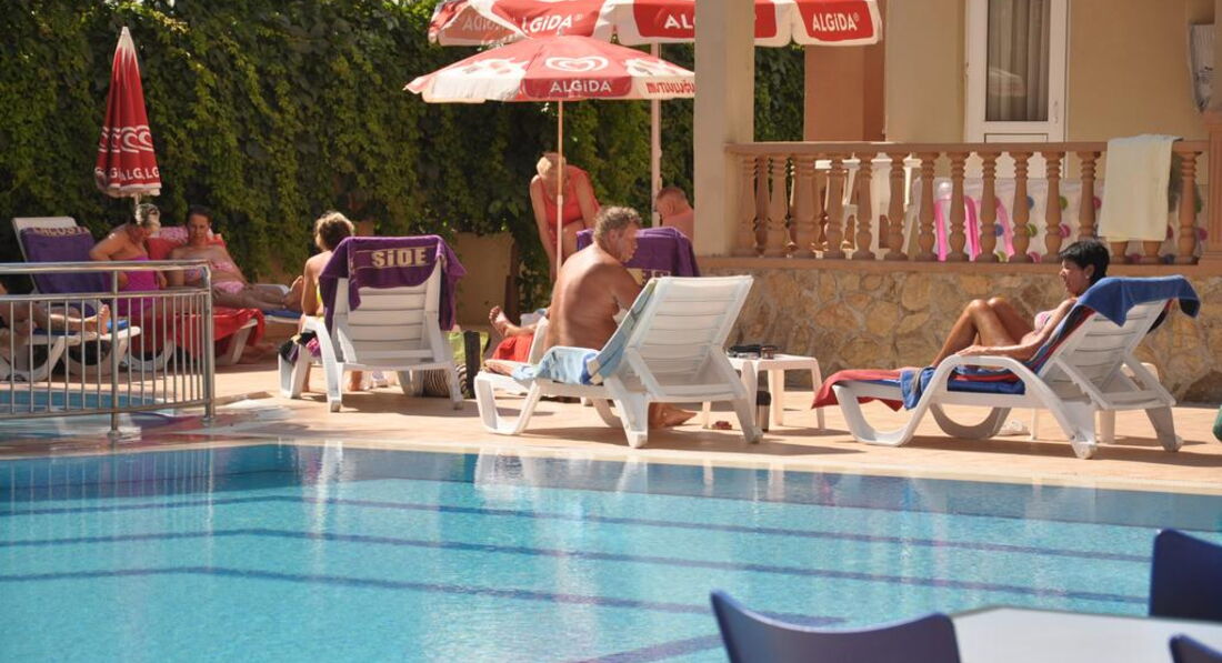 Я здесь пишу все как было на самом деле. Честно говоря, меня это все не сильно раздражает. Но второй раз все равно не очень хочется. Если уж совсем финансы прижмут. Но немцы (пожилые) вполне нормально себя там чувствуют. Да, на территории есть еще маленький бассейн (он на фотографиях отеля всегда присутствует). Один раз за 2 недели выступила турецкая девушка с танцами. Ну так все простенько и незамысловато, с привлечением отдыхающих к исполнению танцев. До центра Кумкея пешком минут 15. До Сиде минут 10-15 на долмуше. До супермаркета в Манавгате тоже на долмуше минут 20. Но в принципе смысла туда ездить особого нет, т.к. маленькие магазинчики есть повсюду.