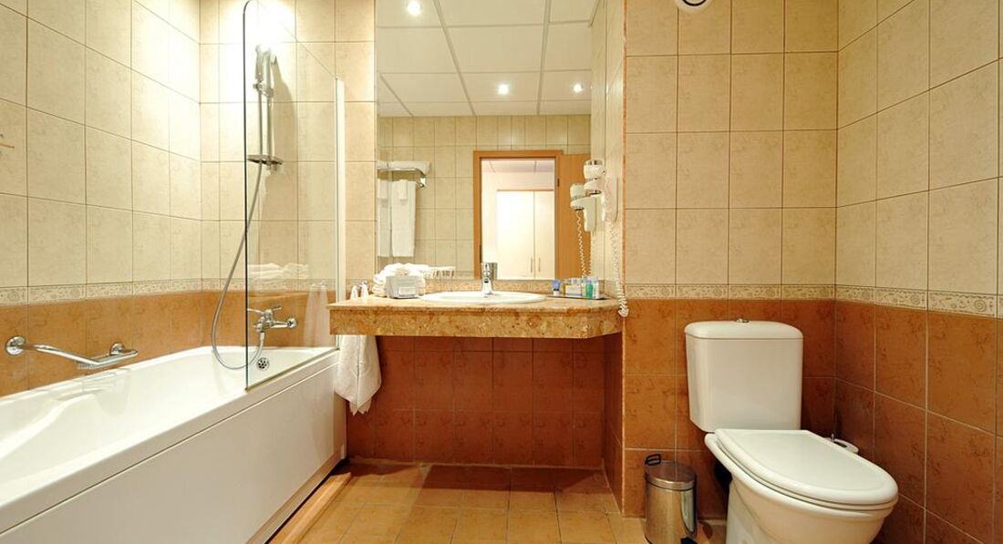 Путевки были недорогие с полупансионом, были там неделю. На ресепшн по-русски с нами не говорили, но мило улыбались. Перед заселением пришлось подождать 20 минут, хотя больше туристов не было, долго оформляли почему-то. Номер понравился,большой, много мебели, фен, маленький холодильник, просторный туалет с душем, стояли 4 баночки с шампунем и гелем для душа, 2 мыла, шапочки для душа, 2 рулона туалетной бумаги.