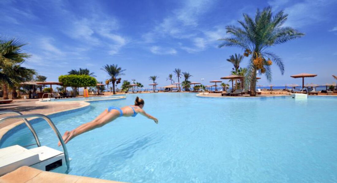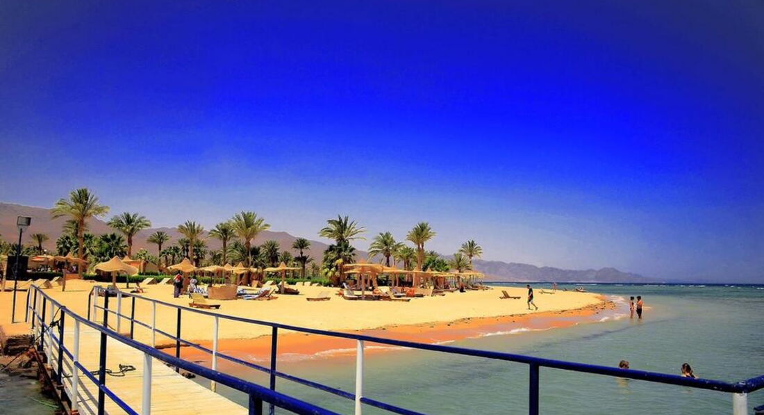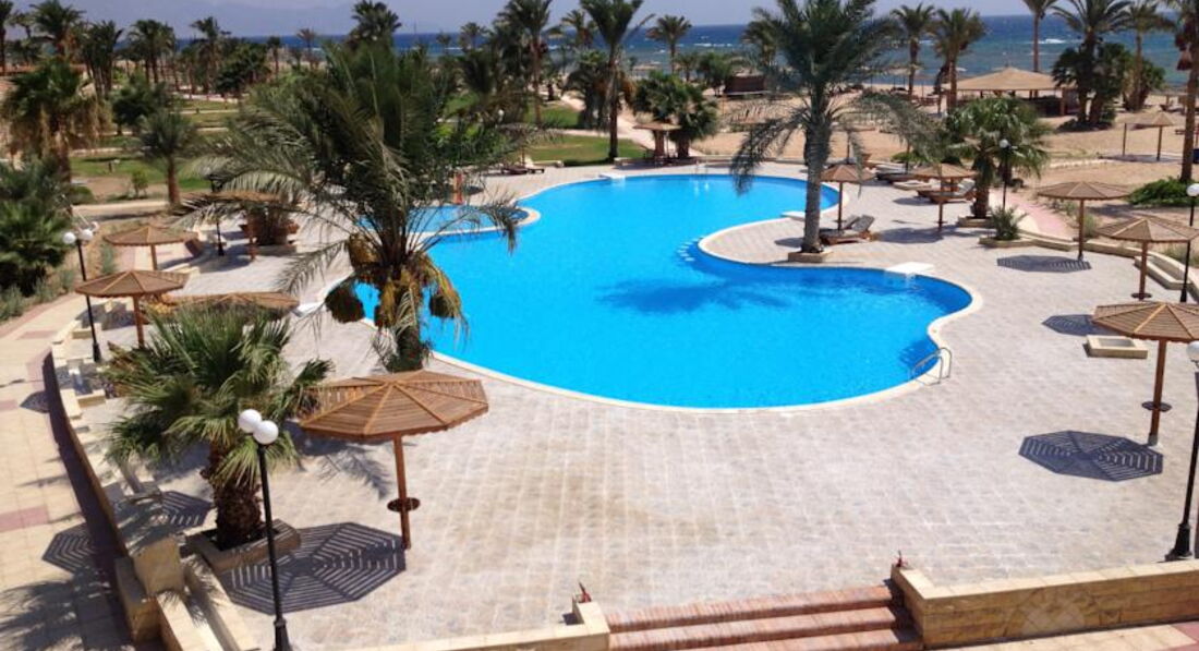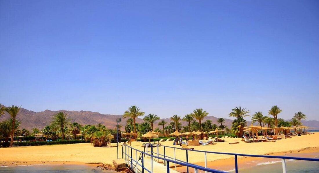 Всем, здравствуйте. Отдыхала с племянницей в апреле. По приезду поселили на третью улицу( номера комнат начинаются на 3, 301,302,и т.д) Нам это очень не понравилось т.к. у двери в бунгало галимый песок и при малейшем ветерке песок в вашем номере ВЕЗДЕ. Пошли на ресепшн, но все делали вид что мы говорим на неземном языке.....Но нам всё же вызвали тур оператора Пегаса-Мухамеда. Он попросил нас переночевать в этом номере, а завтра обещал удовлетворить наши замечания. Почему же в интернете, в фото отеля нет таких улиц с песком????? Переселили нас почти к обеду. Народ, даю совет, берите с собой фумитокс от комаров или каких-то мошек в номерах, там это не купить. Ноги были покусаны уже после первой ночи.И ещё какая-нибудь мазилка пригодится вечером, если будете сидеть у ресторана. Мой выбор пал на этот отель именно из-за отсутствия людей, но раз 5-7 в ресторане были жуткие очереди т.к.останавливались паломники святых мест Иерусалима. Еду разметали в минуты и не всегда повора её доносили. Но это не есть проблема, голодными мы не были. Фруктов почти не было, интересно почему, нас угощали только апельсинами и дыней. Ещё очень удивил тот момент что питьевую воду надо покупать самим, очень странный факт для туристической Африки. Пляж замечательный, у понтона можно в воду заходить без спец.обуви. Каждое утро на пляж выбрасывало кучу водорослей, но к обеду всё было убрано. Аниматор был один, но старался- молодец. Дискотеки проходили каждый вечер, по субботам танцевала девушка восточные танцы. А уж идёшь ты танцевать или нет---выбор за вами. Очень меня удивляет отношение к русскоговорящим туристам( может от нас как-то пахнет особенно) почему мы пьём из пластика а как только иностранец так стекло ему?????????????????????????? В чём суть???? Я не видела никого сильно пьяного из наших. А вот неожиданно появился чех- Ярослав и ходил в каматозе алкогольном 8 дней, но ему наливали соки и алкоголь в стекло. Парадокс.........Ещё хочу поделится отрицательными воспоминаниями относительно тур оператора Пегаса-Мухамеда. Мы купили экскурсию в Иерусалим на 1 день у местного оператора т.к. заплатили 85$, а у Пегаса стоит 175$, разница огромная. Это наше право и наше дело брать ответственность на себя, но Мухамед прознал об этом и 3 дня бегал по территории как ужаленный, говорил что остановит нас с полицией, но никуда не выпустит. Сухих пайков нам не дал, выносили еду с ресторана по-тихому.Пегас вообще оборзел, почему такая разница в цене? В инетнете написано намного меньшая сумма. Ещё один неприятный момент-- верблюды гуляющие по пляжу. Ведь все свои нужды они справляют прямо в пляжный песочек. Бедные мамы с маленькими детьми, надо постоянно следить чтоб ребёнок чего не съел......Ну а даже при наличии стольких неприятных моментов мы отдохнули ОЧЕНЬ ХОРОШО. Накупались, загорели, отключили мозг от работы. Так что кто может не обращать внимание на такие мелочи----ВПЕРЁД. Хорошего всем отдыха!!!!!!!!!!!!!!!!!!!!!!!!!