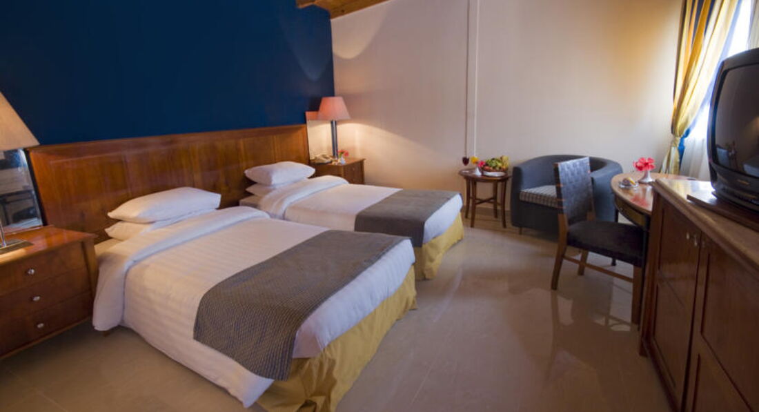 Заселение произошло быстро, номер можно сказать нормальный, ТВ - плазма, белье застиранное, с пятнами. За 10 дней меняли только просыни 1 раз, полотенца ежедневно. Сантехника не старая, но плохо моется. Вообще отелю не хватает хорошего хозяина, который бы заставил персонал добросовестно работать.