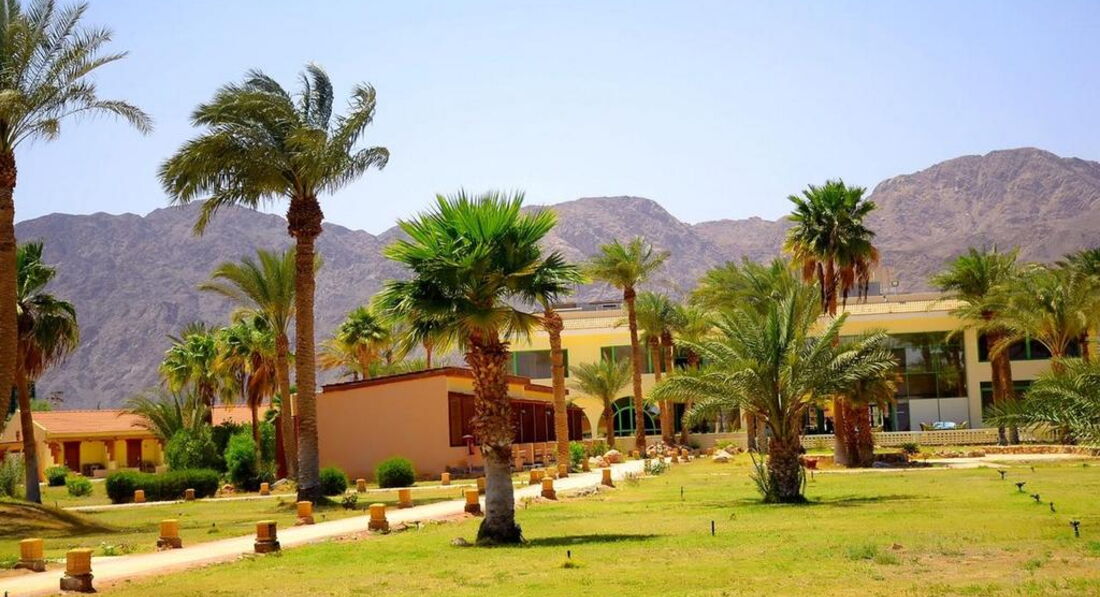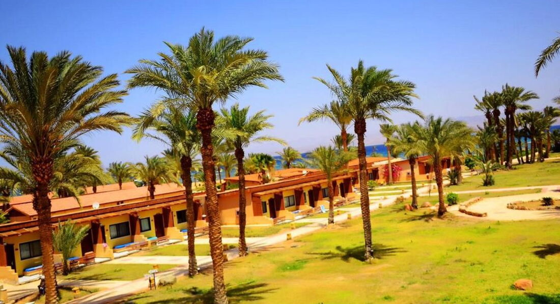 В начале отзыва я бы всем рекомендовал прежде чем выбрать это отель-собрать побольше информации о нем.Чтоб не было разочарования и не испортить свое настроение на весь период отдыха.И определиться какой тип отдыха вам нужен на этот отпуск.Этот отель подходит для тех туристов которые сами планируют свой отдых и досуг.Это место спокойное и уединенное-в стороне от дорог и нет совершенно шумной тусовки.Большая территория-ухоженная-много зелени и пальм-что на фоне пустыни выглядит потрясающим контрастным оазисом!Первая береговая линия-бунгало прямо на пляже.Пляж большой-мест всем хватает.Большой плюс того отеля близость коралловых рифов и множество разных обитателей.Если вы можете пользоваться маской и можете плавать и нравится природа-то вы будете просто очарованы этим и время пролетает быстро.Удобен отель тем что сокращает по времени поездки в Израиль и Иорданию,но гору Моисея,монастырь Св.Екатерины.У кого брать туры -это дело каждого и решает сам конкретно с учетом своего финансового положения и желанием комфорта и спокойствия-у гида или уличного агенства.Номера особенно первые от моря все после ремонта-хорошая звукоизоляция,плитка.новая сан.техника.Уборка ежедневно и качественно.Питание нормальное-но если вы привыкли есть очень много и часто-то это отель вам не подходит.Тут питание 3 раза в день-вполне сбалансированное и нормальное для человека не предвзятыми требованиями к еде.Персонал очень внимательный и всячески старается помогать туристам.это понятно ведь отель удален и они заинтересованы в туристах.Небольшой совет- покупайте тур в этот отель у более солидного тур оператора.Не берите у Анекс тура-я летал от него и если и были какие-то отрицательные моменты-то только по причине этого тур оператора.Началось с аэропорта когда представитель Анекс тура вместо 15 баксов-продавал за 17 баксов марки вызы. При этом нагло врал что произошло повышение.Во-первых нет отельного гида в этом регионе вообще ни в одном отеле что бывает очень не удобно..трансферный гид-оказался случайным ехавшим в эту сторону и только впаривал путевки и не знал ни чего о отелях и их правилах.Нервозность добавить может отсутствие стенда и нет информации о трансфере.сами будите бегать и звонить узнавать.При этом они могут опоздать вас забрать на 1.5 часа!потом все же заберут с пересадкой-в пустыне высадят и скажут ждите большой автобус-едит изТабы сейчас вас подберет.Это не отразилось на отдыхе в этом отеле.там помогают во всех вопросах и понимают что туристы от Анекс тура сами предоставлены себе.Всем хорошего отдыха только положительных эмоций!Мы сами в ответе за то что мы покупаем.Да еще хотел добавить-не советую ехать с детьми.Им будет скучно,далеко трансфер,и вход в море не комфортный для ребенка.Есть комары-так как круглосуточно идет поливка газона-берите стедства от комариков.