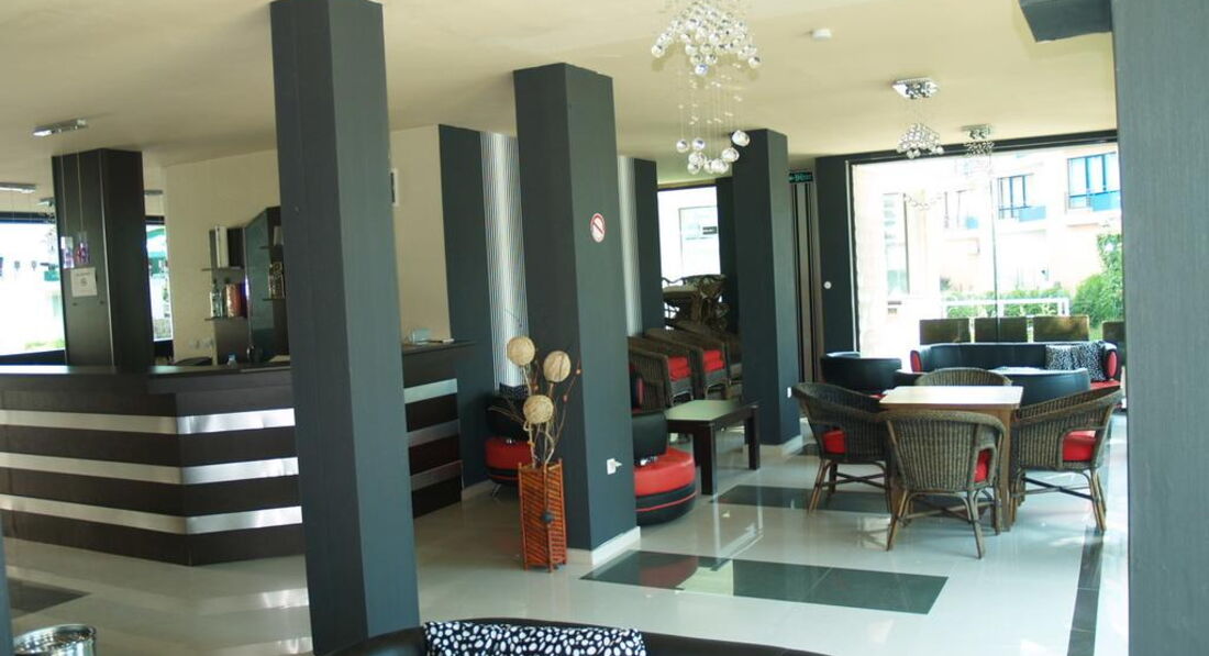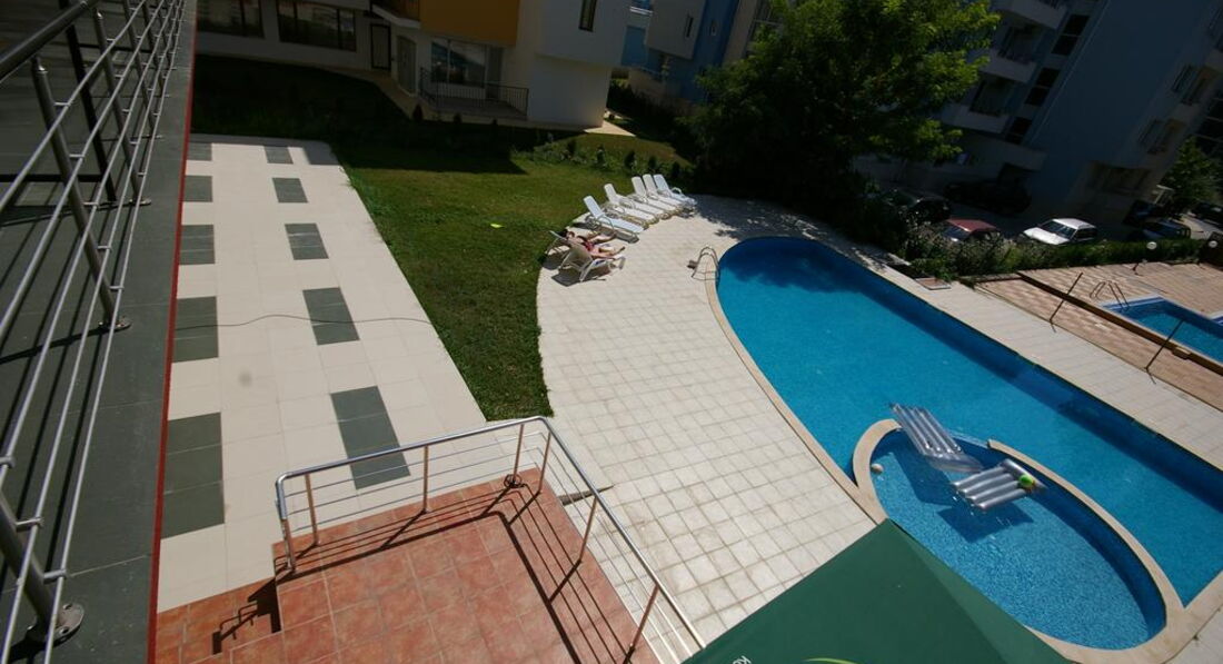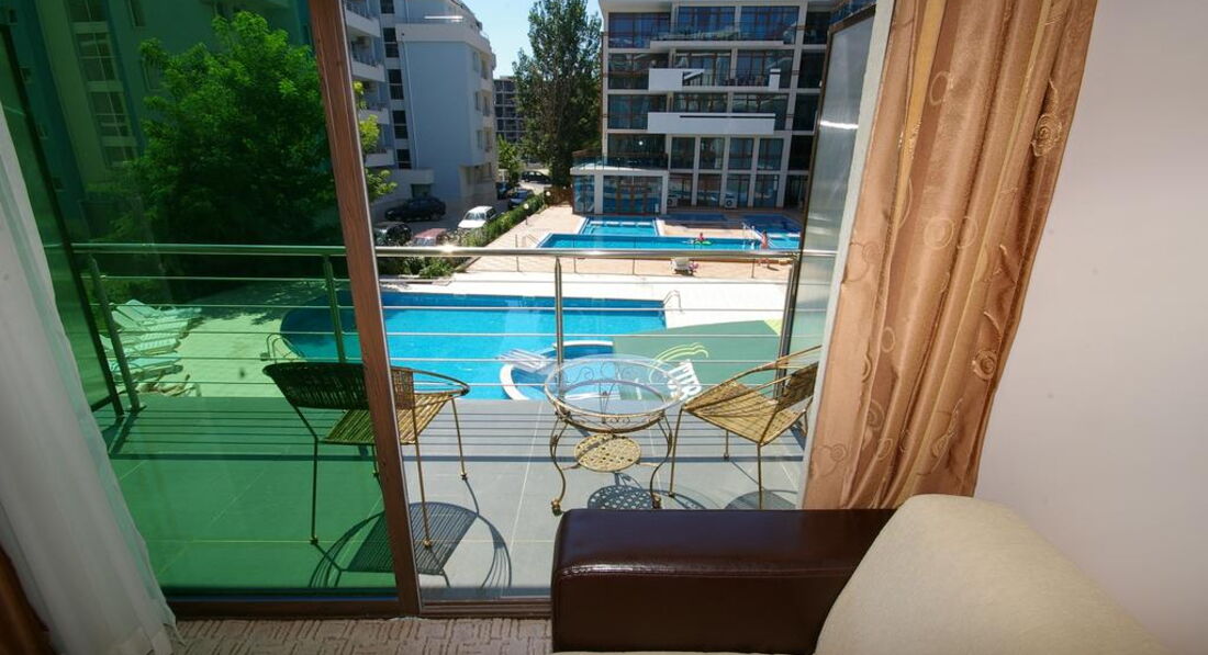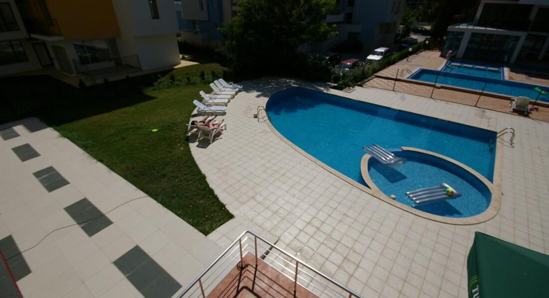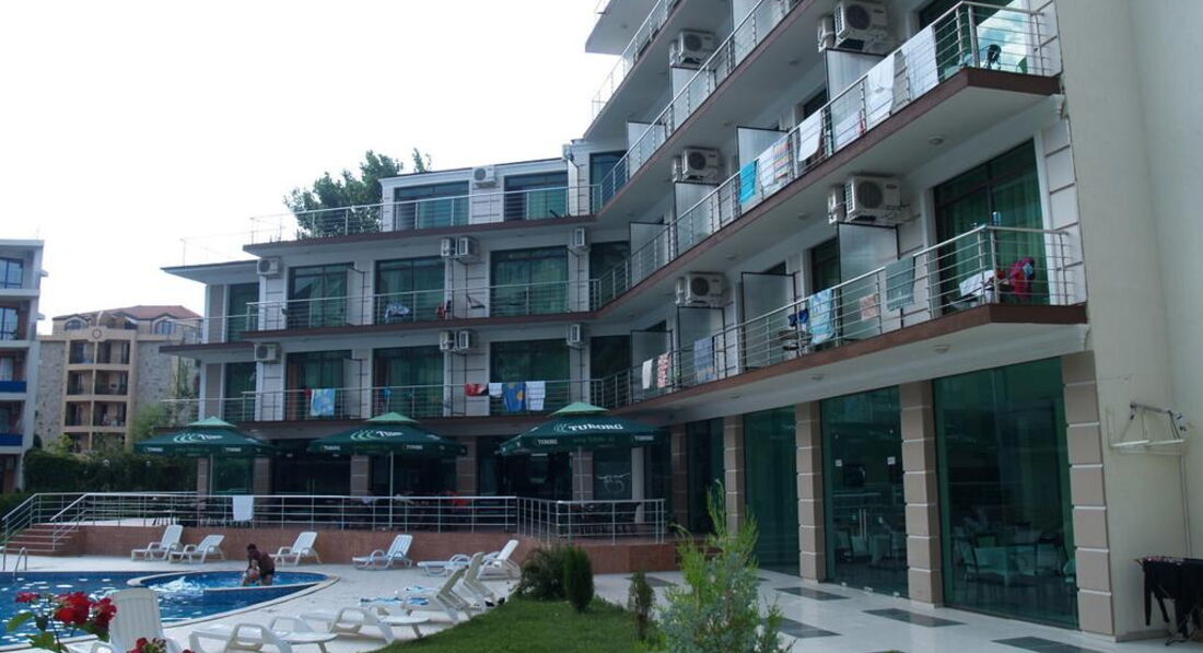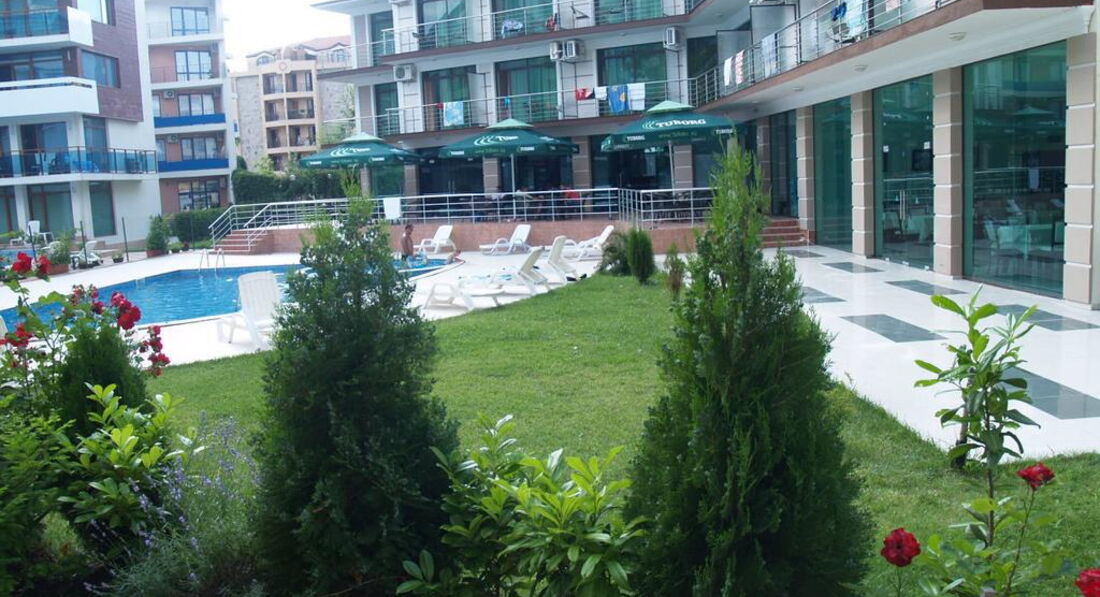 Розташування: у північній частині популярного курорту Сонячний берег, за 30 км від аеропорту міста Бургас, за 400 м від берега моря.