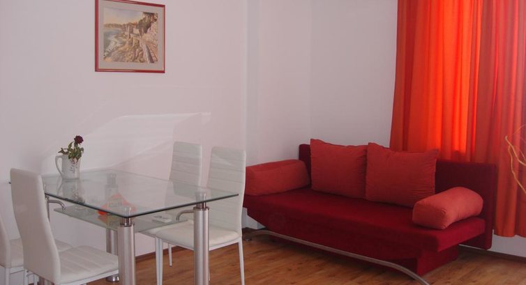 Отдыхали в отеле этим летом. Поселили нас в новом корпусе на 5 этаже. Номер прекрасный. Апартаменты!!! Это студия с кухней и ещё маленькая комнатка с балконом. Всё бы ничего...но представить себе ещё раз, как мы - женщины преклонного возраста- тащили свои чемоданы на 5 этаж... и ведь даже не предупредили, что корпус без лифта. И никакой помощи нам никто не предложил... Типа- спасение утопающих... В номере чисто, новая мебель. Есть кондиционер, холодильник. Фена и чайника нет. Но на кухне есть вся необходимая посуда. Это позволяло варить каши. Про каши- отдельная тема. Я всегда ездила в Болгарию на сытный и разнообразный стол. И никак не думала, что встречу нечто обратное. Мы были на завтраках. И со второго дня уже стали силой его пропихивать, т. к. то, что готовят в этом отеле можно назвать просто издевательством над туристами и гостями. Типа, посмотрим, как вы схаваете это блюдо. На завтрак блюда сплошь из яиц: яйцо отварное, глазунья, омлет на сковородке, булка, смоченная в яйцах и обжаренная на сковороде, сосиски жареные и второй вариант... нарезка одного сорта сыра, брынза, колбаска заветренная, кислое молоко и всякие шарики, кубики...И ещё "фрукты"... В сезон фруктов и овощей, имея рядом по соседству овощебазу, кормить туристов неспелыми сливами и прошлогодними яблоками из Турции, знаете... просто оскорбительно. Для чего красовался пустой чан на раздаче так и осталось загадкой. Естественно, приходилось готовить самим. Поэтому, если для вас питание не играет особой роли, то вам сюда. Пытались подобрать что-нибудь в местных кафе. Но один поход стоил мне потерянного здоровья на 4 дня. Отравление пищевое было налицо. На территории отеля есть прекрасный бассейн, который спасал нас в штормовую погоду. Надо сказать, что море там постоянно штормит. За 11 дней купались всего 2 раза. Море грязное, тина, водоросли... Пляж не убирается. Очень грязно за территорией отеля. Болгары в большинстве своём очень много курят. Причём- везде. Это дико, когда мать, кормящая ребёнка грудью, закуривает сигаретку. Там это норма. Татуировки шагнули по Европе!!! Татуированы даже груднички... В отеле никаких развлечений на вечер вам не предоставят. Аниматоров там нет. Экскурсии очень дорогие. Лучше самим всё посмотреть. До старого города дойти пешком несложно. И на такси съездить в замок Равадиново. Всем рекомендую!!! Вот такое впечатление осталось у меня после этой поездки. Сюда я больше не поеду...