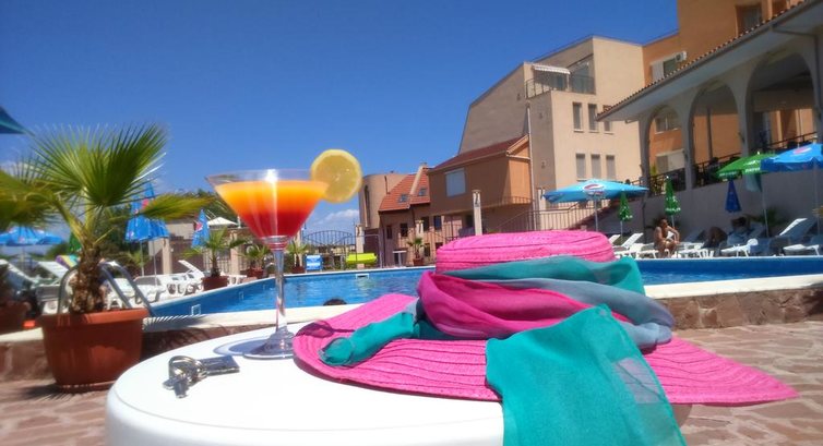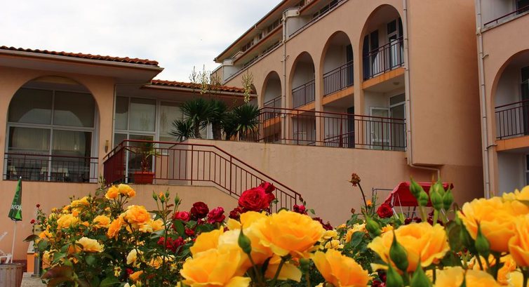 Отдыхали с сестрой и детьми - подростками в конце июня - начале июля. Долго выбирали отель и не пожалели. Он компактный ,на тихой улице , от моря 5 минут по асфальту .Жили в апартаментах ,только завтраки.Нигде не могли найти описание номера , но, когда попали в него ,были приятно удивлены: 2 комнаты с балконом , душ , туалет.В номере есть холодильник,плита ,посуда,стиральн.машина (порошок),кофемашина.Вход в апартаменты отдельный ,ворота закрывают в 23 часа,но можно и через центральный .Администраторы работают круглосуточно,говорят на русском и на английском.В отеле бассейн ,который почти всегда пустой ,т.к. отель небольшой ,по желанию номер будут убирать каждый день,нужно только ключи оставить администратору.По пути к морю фруктовые лавки,где свежие фрукты каждый день.В прохладную погоду мы брали машину напрокат,ее привезли прямо в отель.В главном корпусе ,на ресепшн ,арендовали ячейку,где хранили документы за 3 евро в день.Нам все понравилось ,кроме завтраков,которые однообразные .Рекомендуем всем этот отель ,кто хочет спокойного и тихого отдыха. И попробуйте Кисло Мляко и йогурт болгарский -это вкусно!