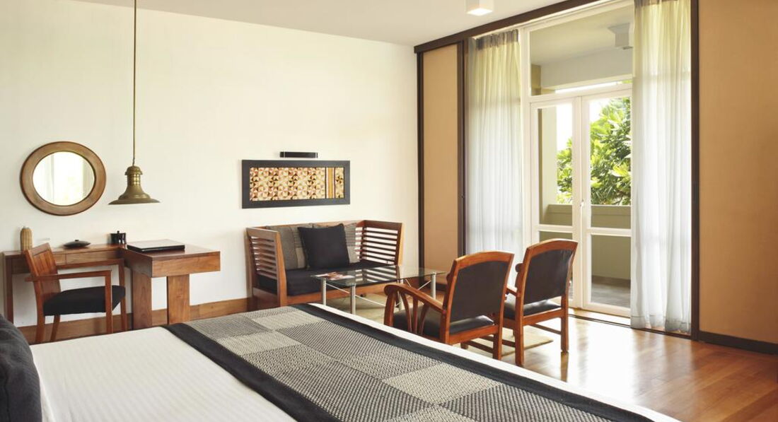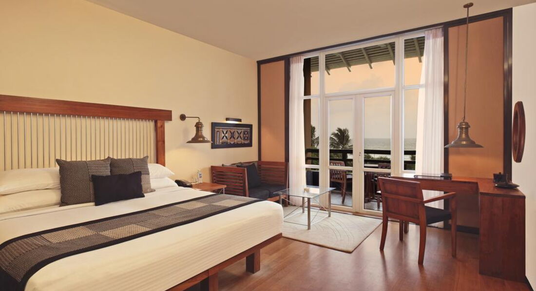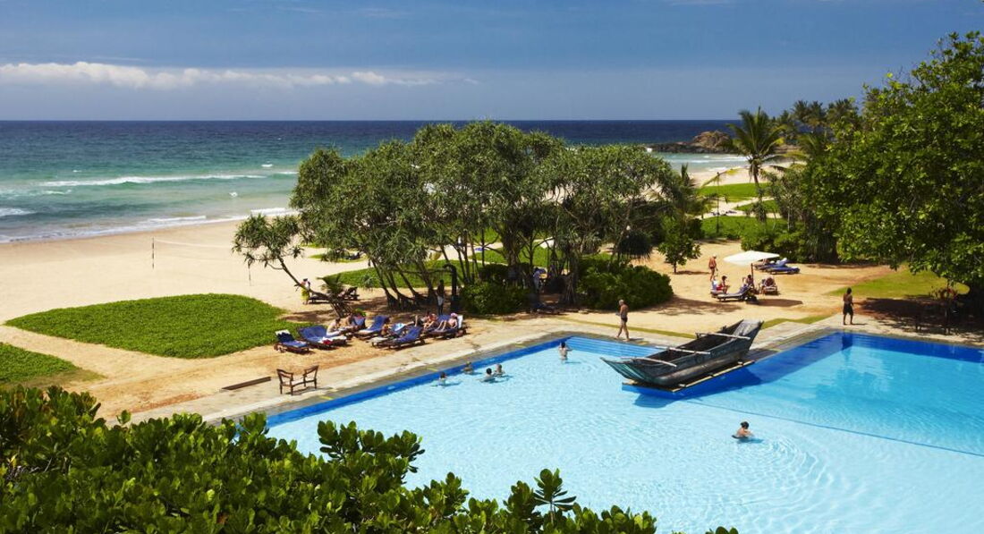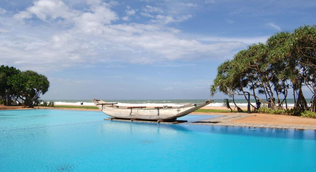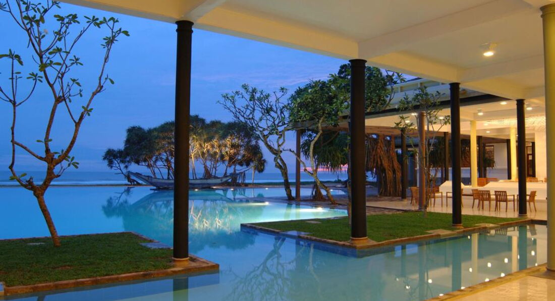 Приехали в отель слегка возбужденными после экскурсии по Коломбо - первый раз приехали в восточную страну. Нас перед заселением встретили вином. Было очень приятно выпить холодное белое вино, проведя целый день под палящими лучами солнца. Заселили быстро. Номер добротный, мебель качественная. Везде было чисто. Ужин заказали в номер, у меня был день рождения. После ночного перелета никуда не хотелось идти. Балдели на балконе под шум океана. Утром поняли, что в отеле очень мало народа. Как мы поняли по речи отдыхающие были из Германии и Англии. Отдыхали в этом отеле четыре дня. Пляжный отдых совмещали с экскурсиями. Завтрак - шведский стол. Разнообразие блюд порадует многих: европейская, местная кухня. Весь персонал вымуштрован на 5 с плюсом. Везде чистота и порядок. В отеле прекрасные интерьеры с внутренними двориками, с видами на океан. На территории отеля два бассейна - один большой, там шумно - игры, анимация, дети. Второй бассейн поменьше - там спокойнее. Территория отеля со стороны пляжа огорожена флажками. Местный народ за флажки не заходит, демонстрирует товары, не переступая границы (охрана отеля несет службу исправно!). Отель предназначен для семейного отдых и отдыха с детьми. Для тех, кто желает отдохнуть от шума и суеты. Мы с мужем не очень нуждались в дискотеках, но и нам было немного скучновато. Фотографии выставить не могу, т.к. не могу найти свои архивы. Смотрите фото на яндекс-фото, все именно так и есть красиво, как на фотках изображено.