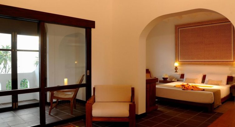 Маха Гедара – отель очень большой (сравниваю с аюрведическими курортами Кералы), находится прямо на берегу Индийского океана в местечке Берувела, что предполагает примерно трехчасовой трансфер от аэропорта Коломба. Обратите внимание, что вас могут повезти либо по старой бесплатной дороге (это и будет 3 часа), либо по новой платной (что сократит время трансфера примерно до 2 часов). Отель корпусной – 3 соединенных между собой крыла, окна всех номеров выходят на океан. Все номера имеют балкон, либо, если это первый этаж – террасу. Я проживал в номере Suite Room на третьем этаже основного здания. Номер очень просторный, разделен на спальню и гостиную. Излишне говорить, что в номере имелось все необходимое, включая аюрведический халат.