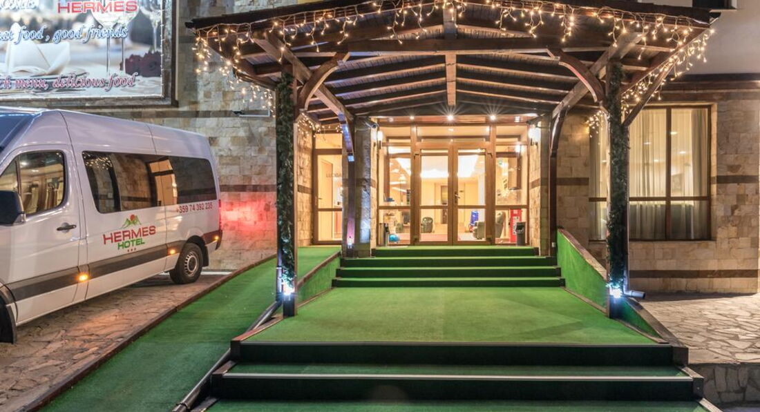 Готель Гермес знаходиться в 700 м від центру відомого гірськолижного курорту Болгарії - Банско, розташованому біля підніжжя Піринських гір, за 1,5 км від витягу. Затишний готель добре обладнаний, пропонує якісний сервіс. Він дуже зручний для проживання та відпочинку любителям гірськолижного спорту.