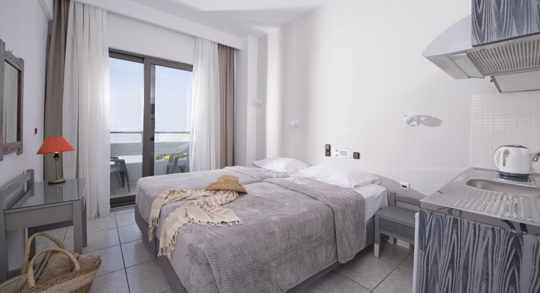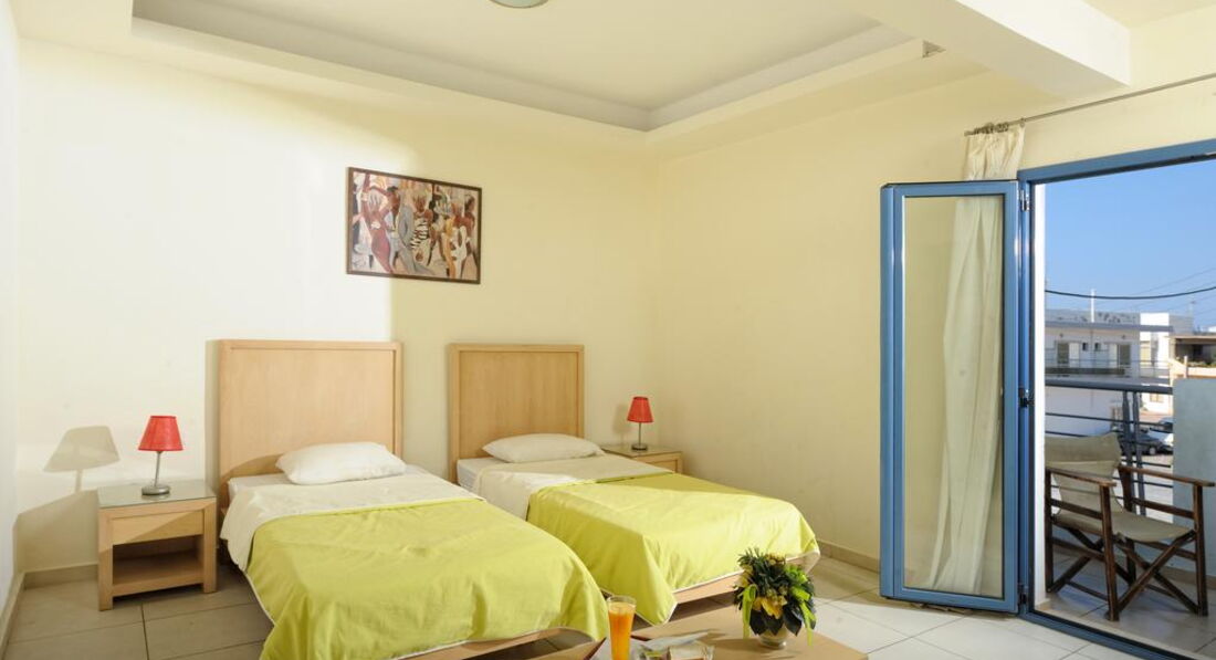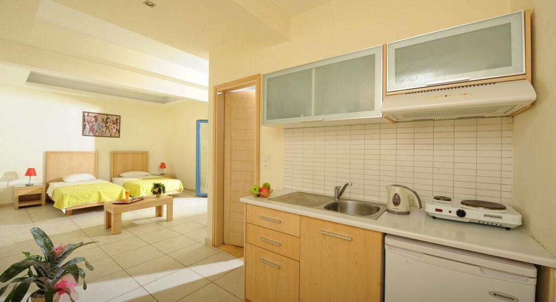 Всього 50 номерів: Studios 2 pax (~20 кв.м), Studios 3 pax (~25 кв.м). Типи номерів: Studio 2 pax 2 односпальні ліжка або двоспальне ліжко. Studio 3 pax Двоспальне ліжко та односпальне Або 3 односпальні ліжка. Тип додаткового ліжка – диван-ліжко.У номері: Балкон/тераса Душ Кондиціонер за доплату Кухня ТБ Холодильник Чайник