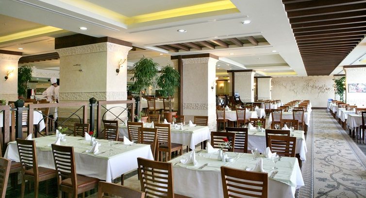 Головний ресторан – Hauptrestaurant. 5 ресторанів A la Carte (19:00-21:30, безкоштовно 1 раз за весь час проживання, за резервацією): турецька кухня, французька кухня, італійська кухня, мексиканська кухня, рибна кухня.