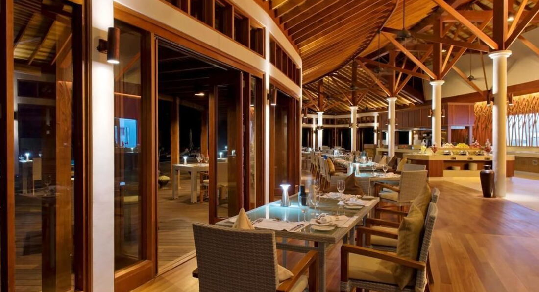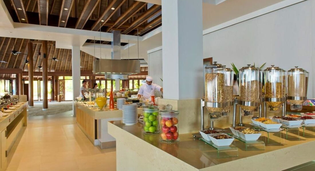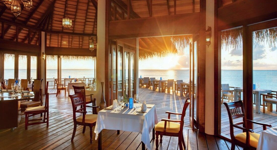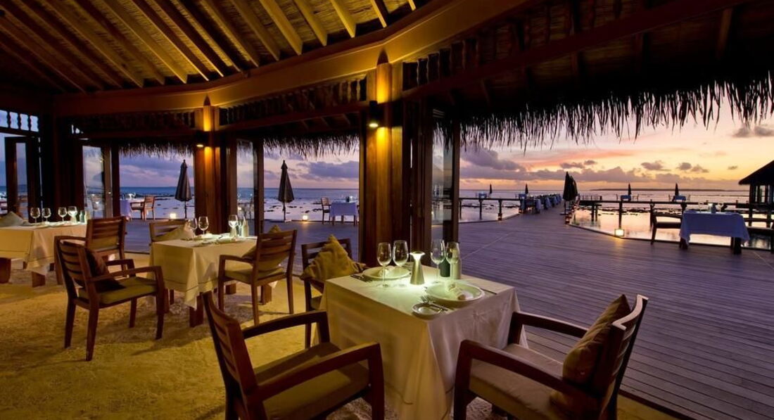 •2 ресторани: основний Matheefaru (сніданок – шведський стіл, вечеря – a la carte, міжнародна кухня з елементами французької кухні), Samsara – надводний ресторан, відкритий під час вечері (a la carte, індійська та японська кухня, теппаньякі)