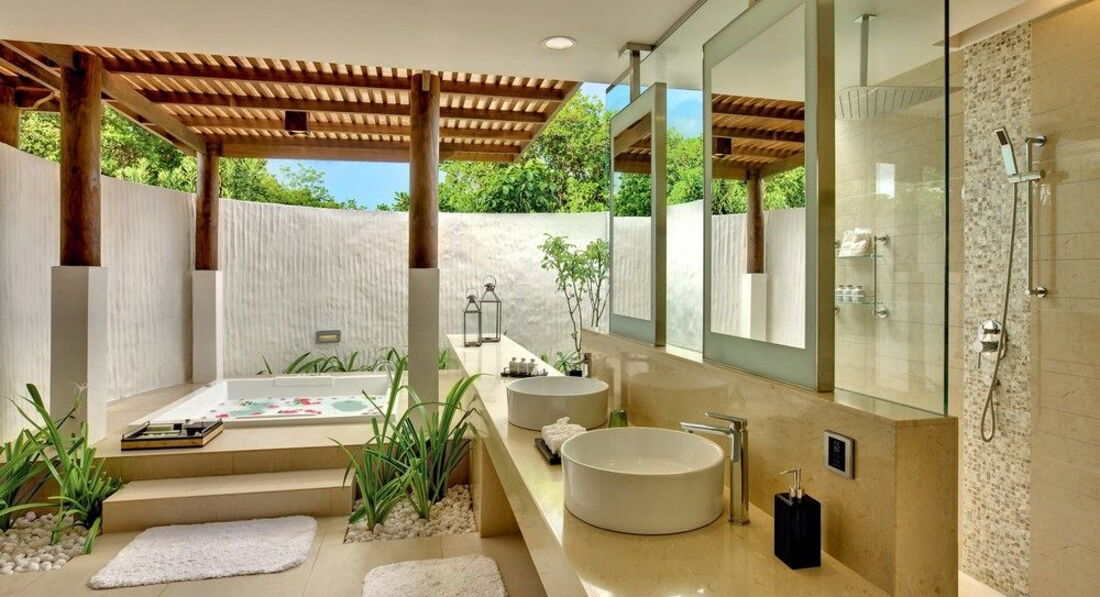 18 Beach Residence With Plunge Pool (550 м², макс. - 3 або 2+2 чол.). Берегові вілли з прямим виходом на пляж. Вітальня з обідньою зоною, кухонний куточок, окрема спальня та вбиральня, ванна кімната частково на відкритому повітрі з джакузі для двох, приватний басейн (8 м2).