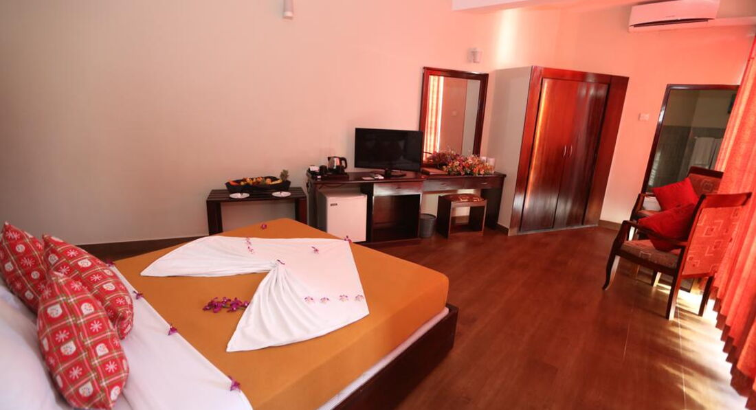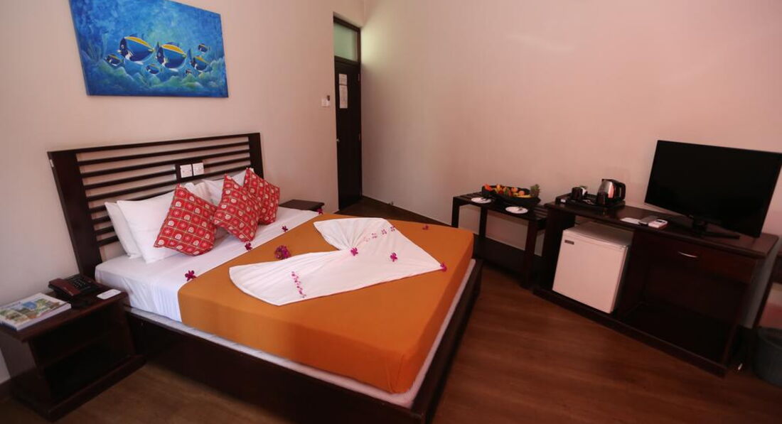 Отдыхали с мужем в ноябре-декабре 2016года . Заселили нас в номере с видом на океан! Все что нужно в номере было. Да , постельное белье в номере старое, нет маленьких полотенец. Но попросив у работника нам через день принесли. Персонал отзывчивый, всегда с улыбкой приветствовали нас! Завтраки были вполне сносными! Много фруктов, мне понравился молочный рис, а творог в глиняных мисках с кокосовым медом - вообще песня! Расположение отеля- отличное! Выйдешь из отеля, на лево пойдешь: фруктовый рынок, лепешки ротти пекут, всякие булочки, кокосовый мед,жаренную рыбку продают, много магазинов промтоварных и продовольственных; на право пойдешь : рестораны, кафешки, двухэтажный супермаркет. Ужинали в Мун лайте, Ред лобсторе, везде было вкусно! Напротив нашего отеля тоже есть кафе, когда не хотелось далеко идти с удовольствием кушали там, чаще в обед! Ну и самое приятное в этой поездке - это океан! Теплый ,ласковый,плавали вместе с рыбками, восторг и удовольствие, особенно детям!Порадовал нас и аюрведический салон. Массаж с натуральными маслами, с применением травяных горячих мешочков. Салон находится рядом с отелем, перед магазином Honda висит рекламный щит Sepra natural,завернуть с основной дороги в проулок, перейти железную дорогу и увидите дом с небольшим садом( там есть вывеска) . Нам о нем соотечественники рассказали, сами мы бы не нашли. Мы в первые дни ходили и в другие салоны, цены высокие, массаж спины заказала- делали сидя на стуле... Не понравилось,а потом вот нашли замечательное место и ходили на массаж с удовольствием. Я покашливала так доктор мне дал микстуры и через 2 дня мне реально стало легче. Так что если кому нужно не только отогреться на солнышке, накупаться в море, но и поправить здоровье можете к ним обратиться! Брали только 1 экскурсию в Канди. у наших туроператоров Анекс тур все понравилось,интересно было послушать о стране, как все у них устроено в государстве Шри-Ланка! Ездили на фабрику чая, в ботанический сад, видели дерево посаженное Юрием Гагариным, Николаем 2, посетили выставку орхидей и многое другое. Вот вернулись домой, очень довольны нашим путешествием в страну солнечных, улыбчивых , добрых и красивых людей!