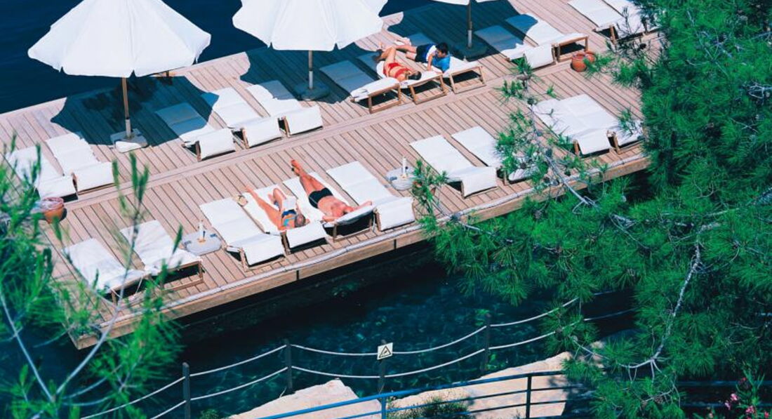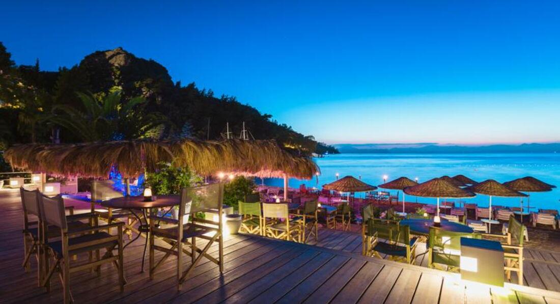 Пляж: власний, гальковий, довжина 650 м, пірс, вхід у море: платформа; кабінки для перевдягання, душ; пляжні рушники, парасольки, шезлонги та матраци, на пляжі та біля басейну - безкоштовно. Є 2 пляжі лише для дорослих.