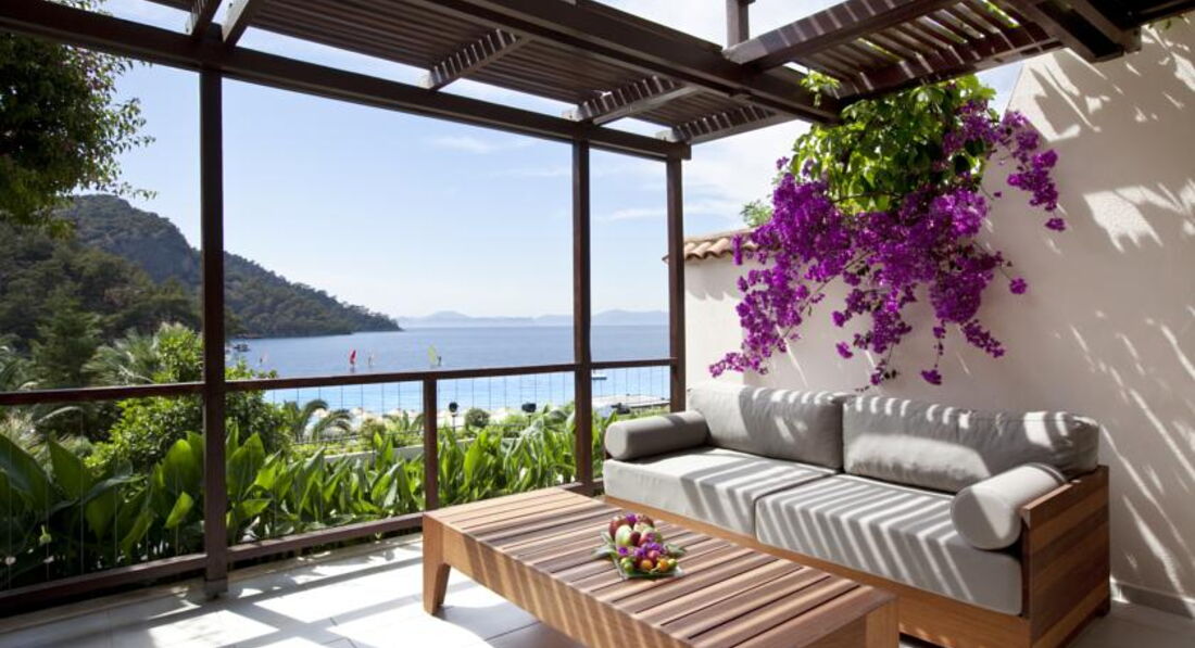 Отель расположен в одной из самых красивых бухт Фетхие, недалеко от бухту Олу Дениз, в которой занимаются парасейлингом. Основная масса отдыхающих в этом отеле - иностранцы. Безупречный сервис, для тихого спокойного семейного отдыха. Достаточно просторные и уютные номера, практически во всех номерах вход в ванную комнату - через террасу. Есть такой нюанс, бронировать номера в этом отеле на август и сентябрь - надо где-то в мае месяце, потому как уже в конце июня - начале июля на этот период номеров уже нет.