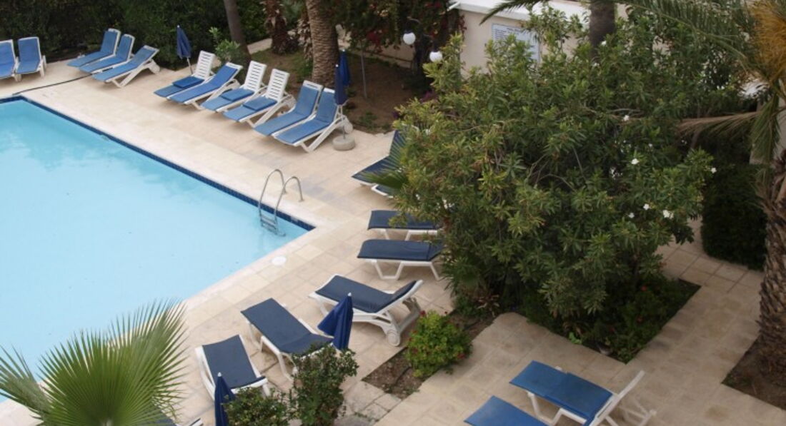 Сам отель находится на самом краю в загаженном и не самом красивом месте Пафоса, рядом только один мизерный пляжик без смывок и передевалок, из плюсов только шаговая доступность Лидла и гробниц королей, Лучше ехать в поселок Корал Бэй там красиво, чисто, большой песчанный пляж и цены в кафе на порядок ниже..... а ехать до Пафоса всего минут 15 билет 1,5 евро....